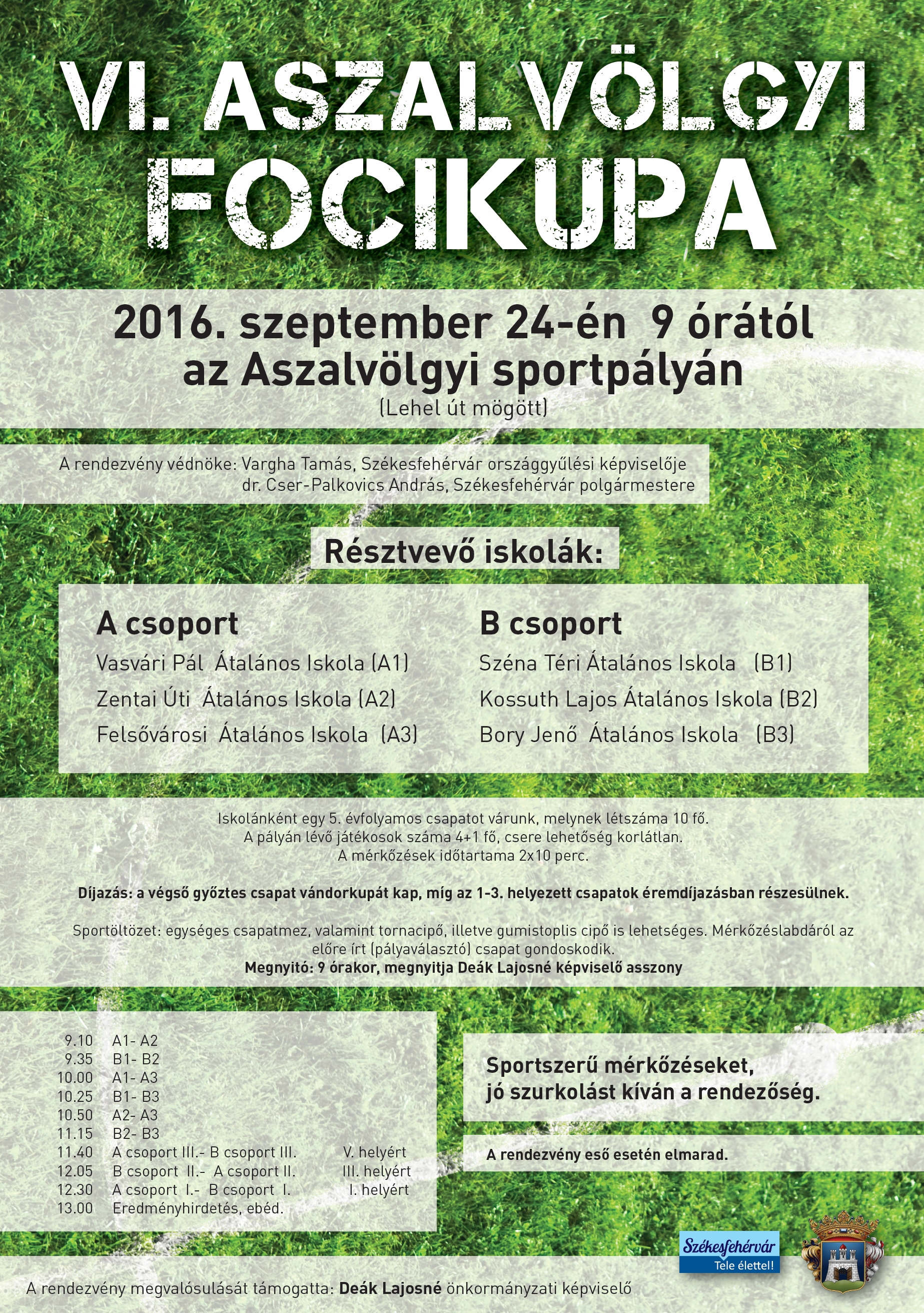 Szombaton rendezik a Lehet út mögötti sportpályán az Aszalvölgyi Focikupát: az általános iskolás focicsapatok összecsapását számos program is kíséri. A focikupát még 2011-ben azzal a szándékkal indították, hogy a gyerekek figyelmét felhívják a sport fontosságára és ez a program is lehetőséget adjon a sportolásra, mozgásra a szabadban.