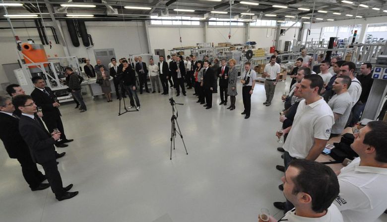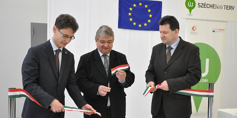 Az új csarnokot és irodaépület együttest Kovács István az ELME Automatika KFt. ügyvezetője, Cser-Palkovics András polgármester és Molnár Tamás a Közép-dunántúli Regionális Fejlesztési Ügynökség vezetője adta át a cég dolgozóival közösen tartott ünnepségen.