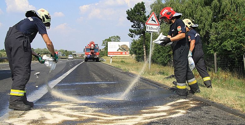 A két hátsó ajtót, a középső oszlopot és a gépkocsi tetejét is levágták a tűzoltók. Ezt követően emelték ki a mentőkkel közösen a sérült férfit. A balesetben mindkét jármű üzemanyagtartálya megrongálódott, amelyekből gázolaj folyt az autópályára. A burkolatra került üzemanyagot a tűzoltók mentesítő anyaggal és földdel fedték le. A műszaki mentés részeként a két járművet daru csörlőjével széthúzták.
