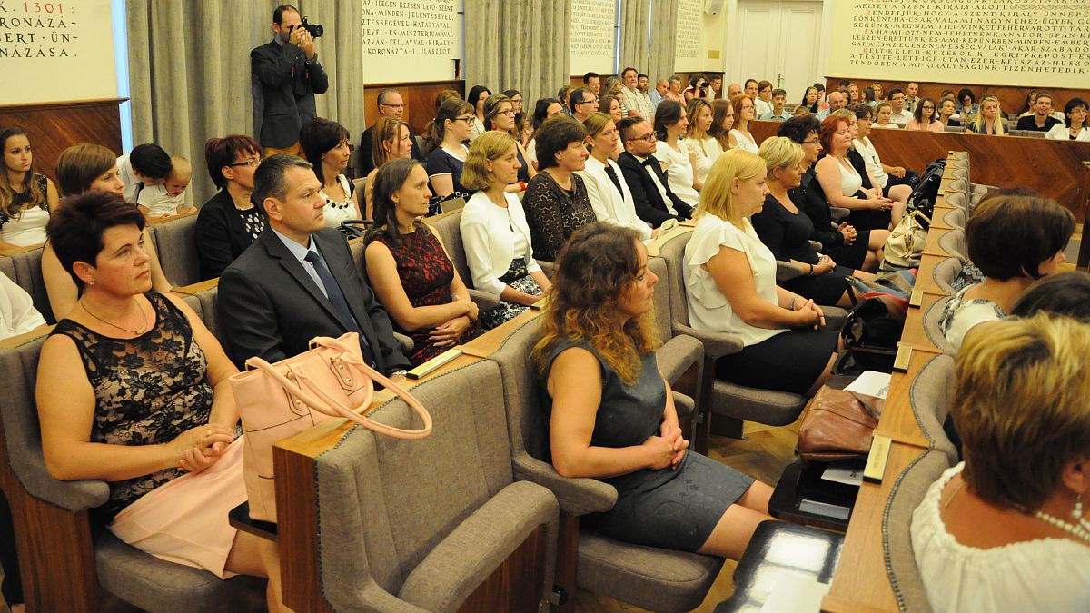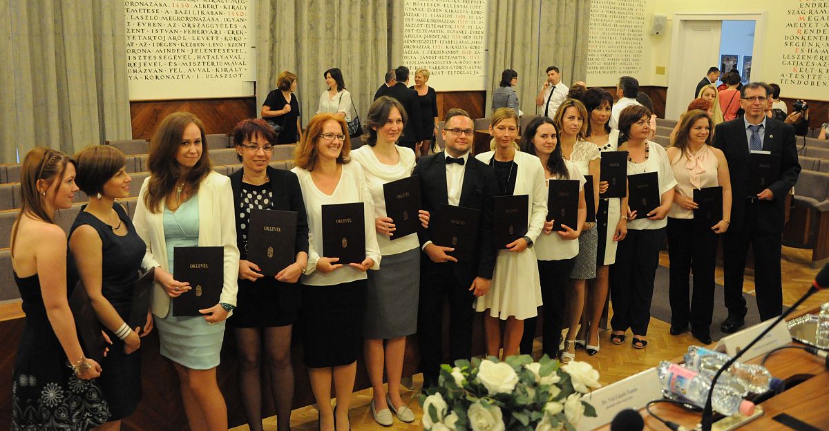 „Az hogy mai ilyen szép számmal megjelentek a diplomaátadó ünnepségen, bizonyíték arra, hogy fontos állomáshoz érkeztek életükben, büszkék arra a teljesítményre és munkára, amivel ezt elérték. A pedagógus szakvizsgát adó képzések szakmai és oktatásszervezési kérdésekért felelős vezetőjeként én is örülök, annak, amit közösen értünk el. Mindig nagyon fontos visszajelzés számomra, amikor a vizsgákon hallhatom, milyen sikeres, odaadó pedagógusok Önök a saját iskolájukban, óvodájukban, és mik azok az ismeretek, ötletek, kapcsolatok, amikre az általunk szervezett képzések során tettek szert. Minden pedagógus példakép, így muszáj tartást, erőt és méltóságot sugároznia.” – mondta Dr. Hoffmann Orsolya rektorhelyettes, aki azt kívánta a végzősöknek, hogy higgyenek magunkban, céljaikban és az ahhoz vezető út helyességében.