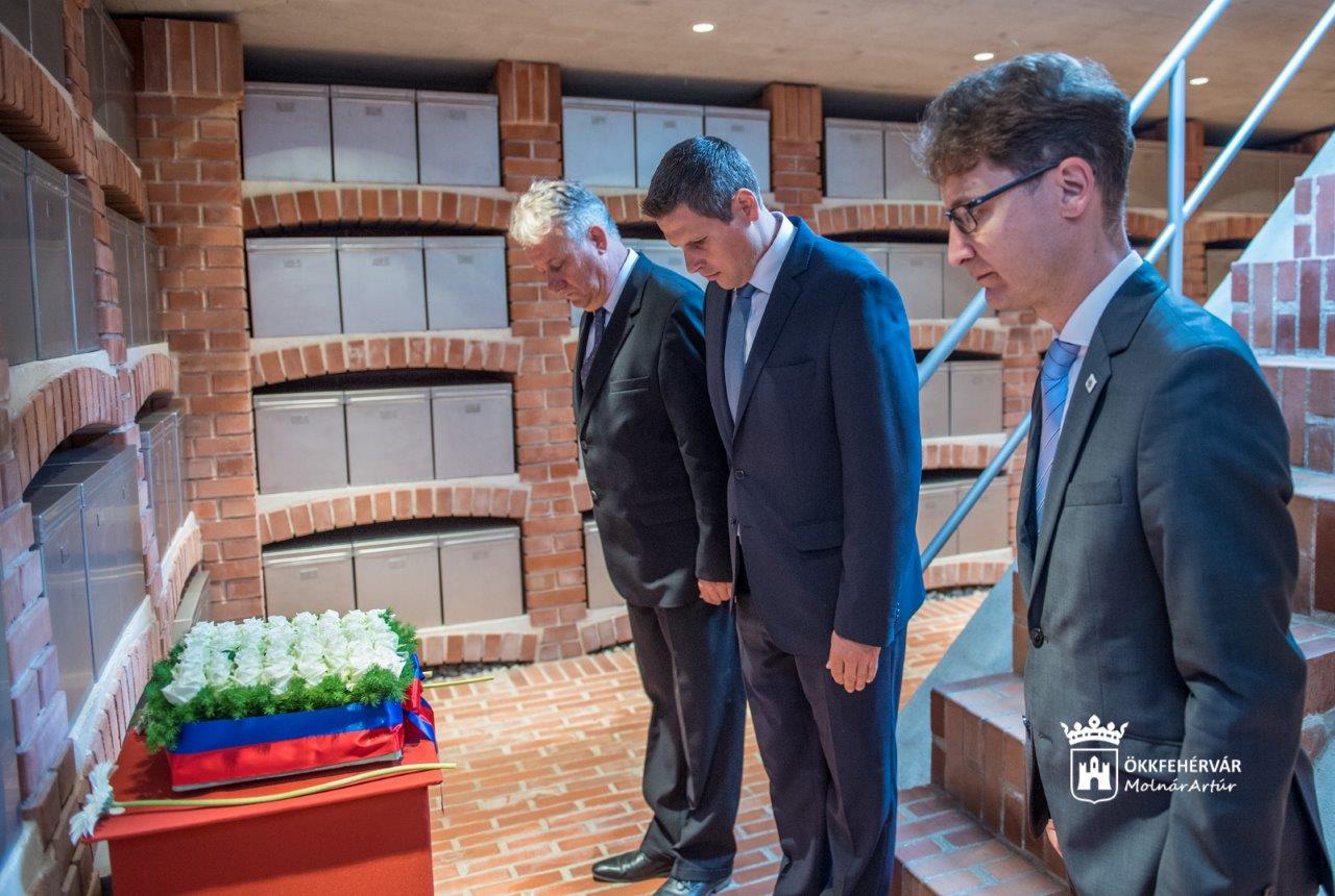 „Az itt eltemetett személyek közül Székesfehérvár, Fejér megye és Magyarország történetében sokan töltöttek be fontos szerepet. Nagy a felelősségünk tehát, minden tudásunkat és erőnket latba kell vetnünk, hogy minél szélesebb körben megismerjék a fiatalok tetteiket, történelemformáló szerepüket. Értékrendjükkel, példájukkal itt vannak közöttünk ma is, és itt kell, hogy maradjanak velünk.” - emelte ki beszédében dr. Simon László.