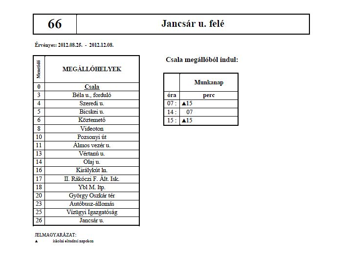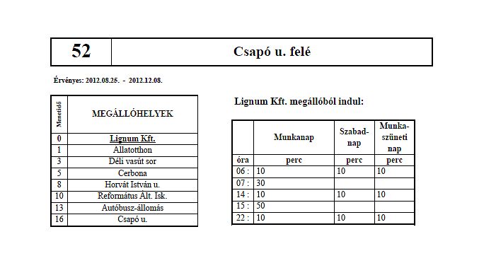 | Járat | Menetrend - oda és vissza (.jpg) |