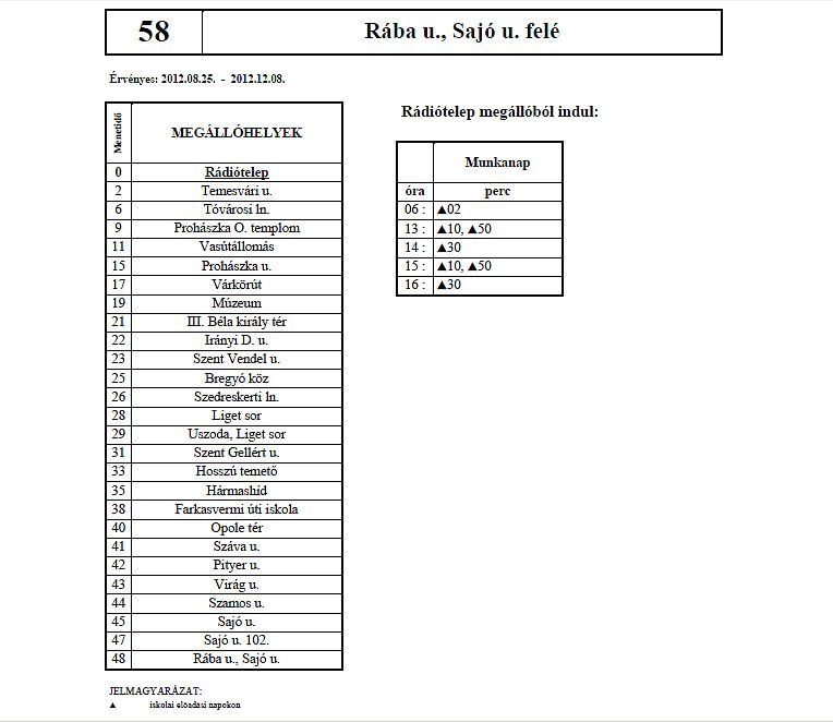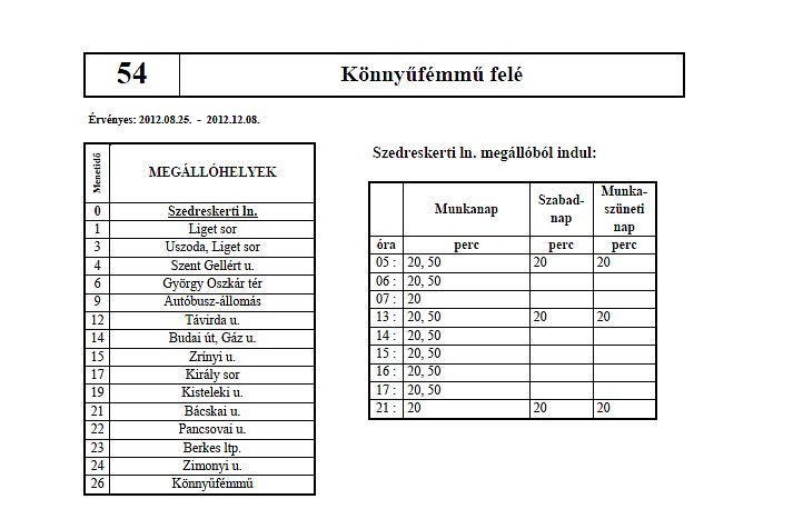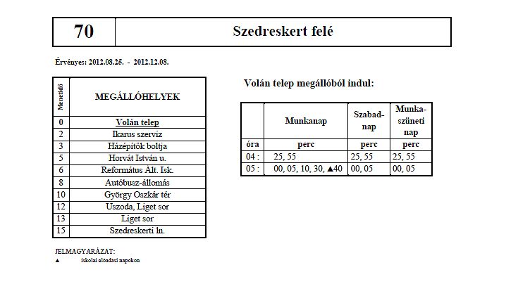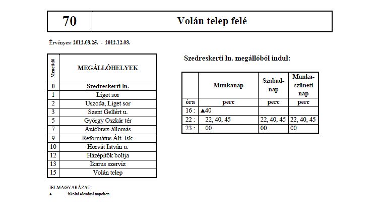 | 70 | Volán telep - Szedreskert | LETÖLHETÕ (.pdf) | |||