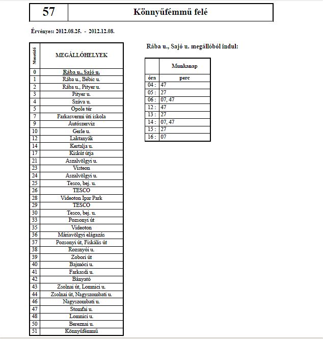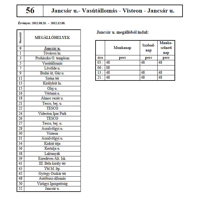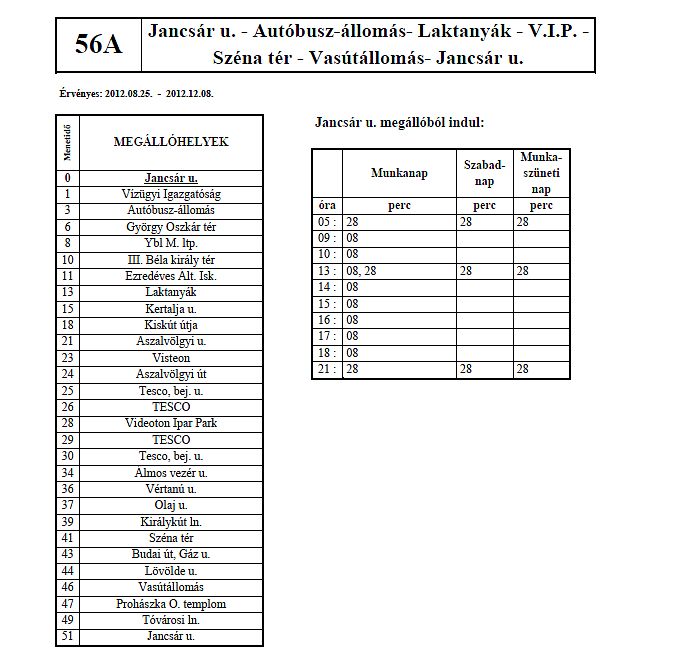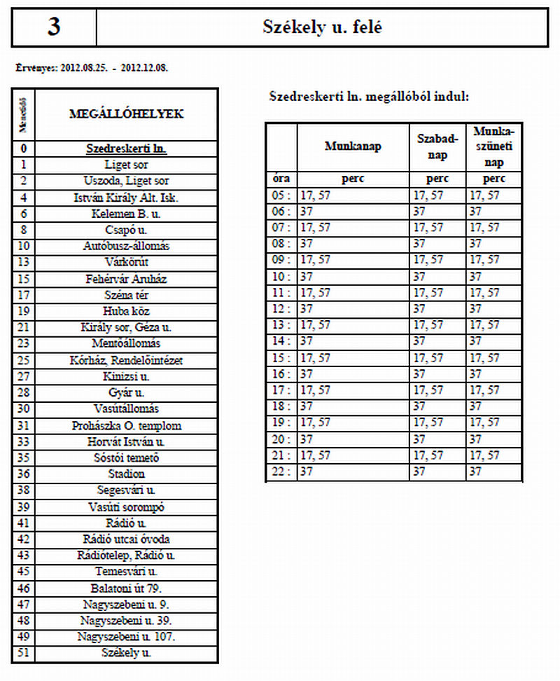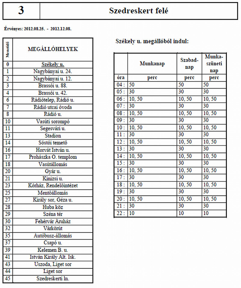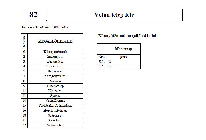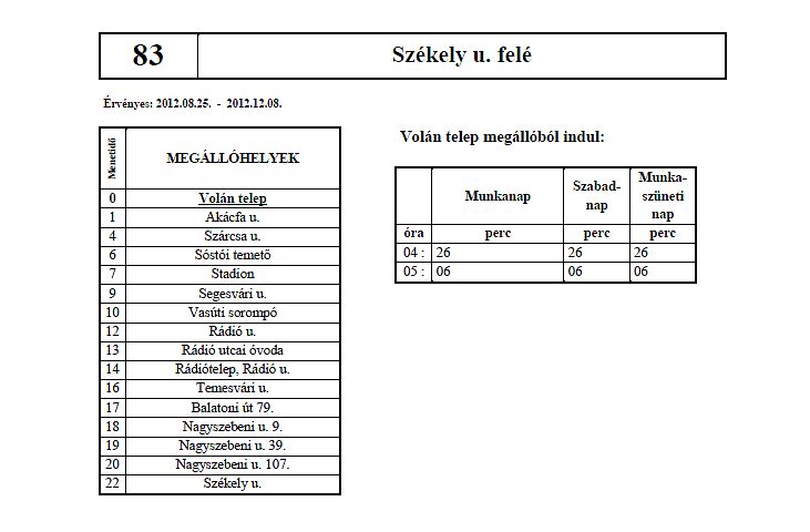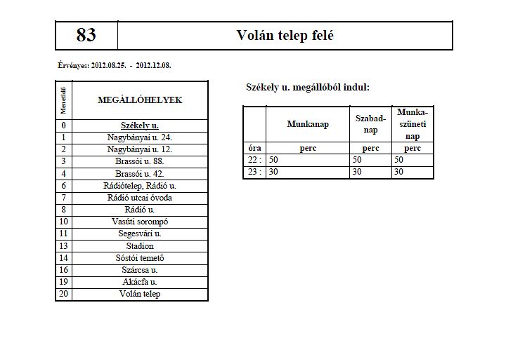 | 83 | Volán telep - Székely u. | LETÖLHETÕ (.pdf) | |||