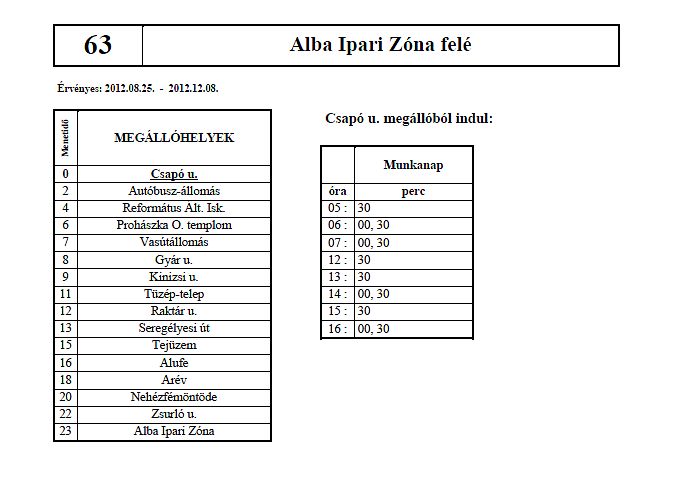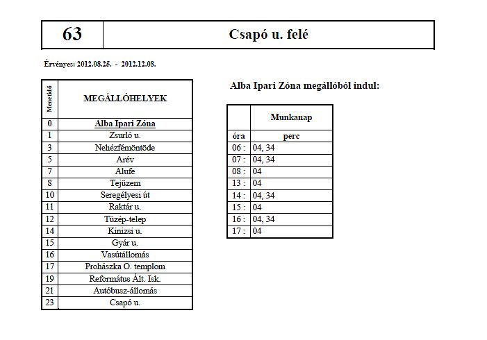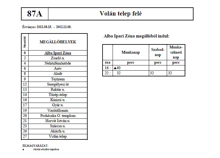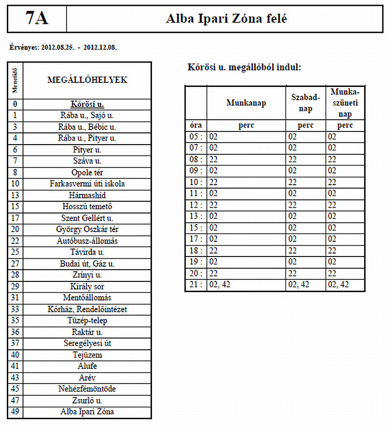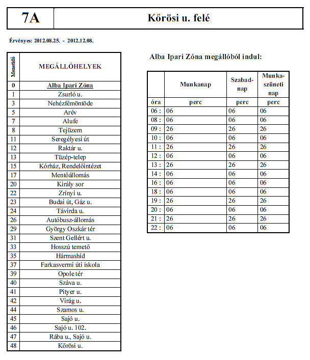 | 7A | Körösi u. - Alba Ipari Zóna | LETÖLHETÕ (.pdf) | |||