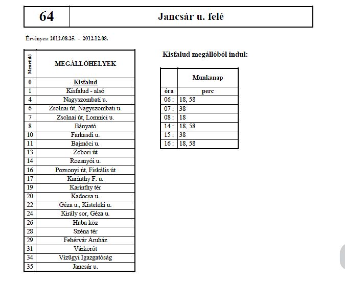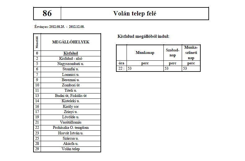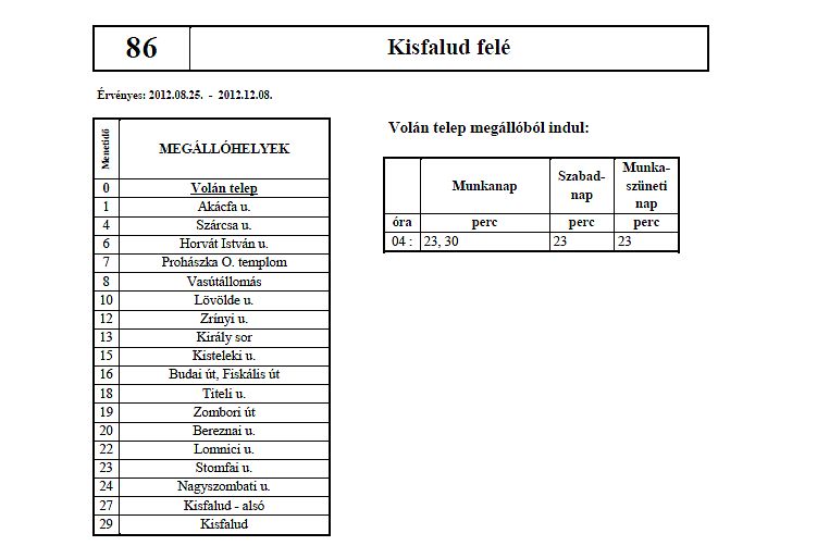 | 86 | Volán telep - Kisfalud | LETÖLHETÕ (.pdf) | |||