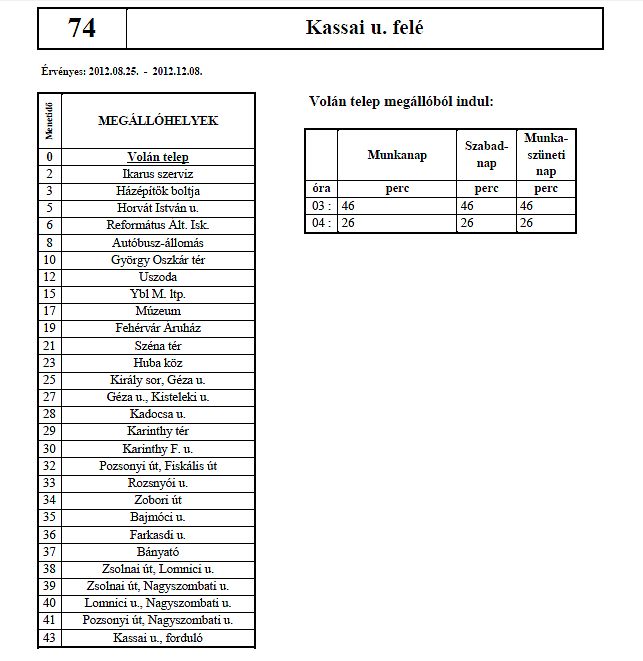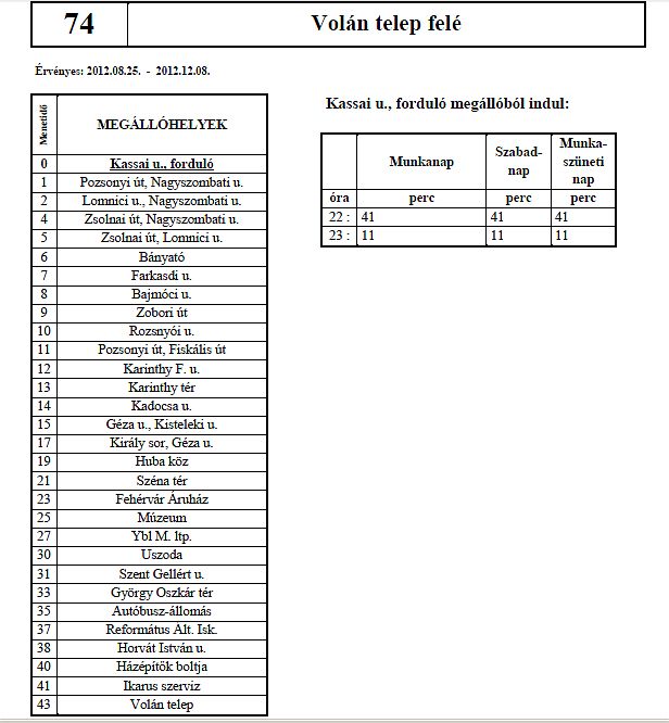 | 74 | Volán telep - Kassai u. | LETÖLHETÕ (.pdf) | |||