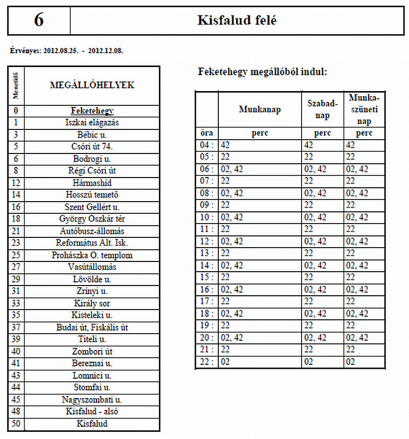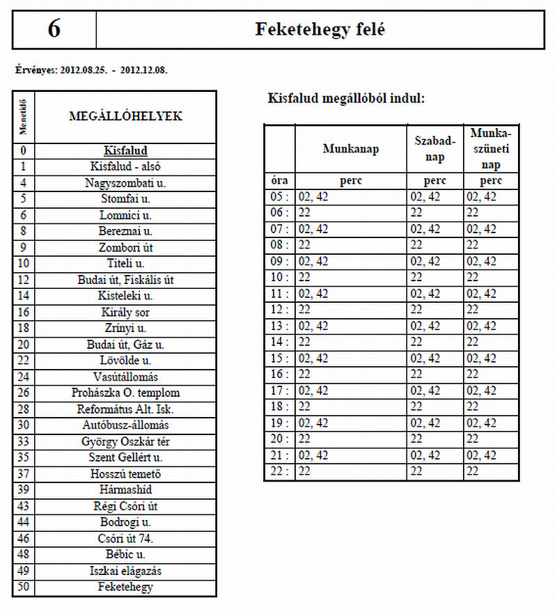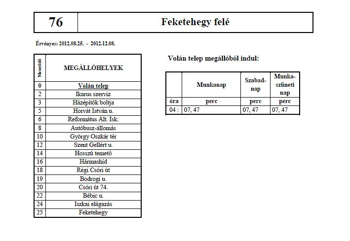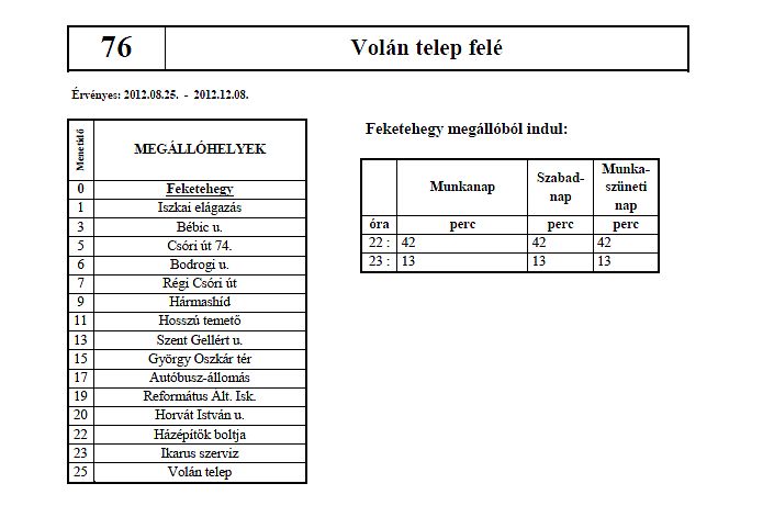 | 76 | Volán telep - Feketehegy | LETÖLHETÕ (.pdf) | |||