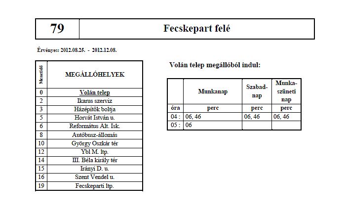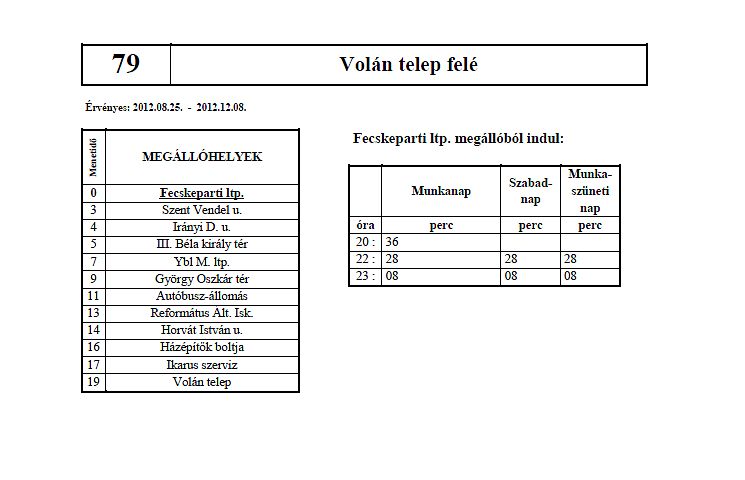 | 79 | Volán telep - Fecskeparti úti ltp. | LETÖLHETÕ (.pdf) | |||