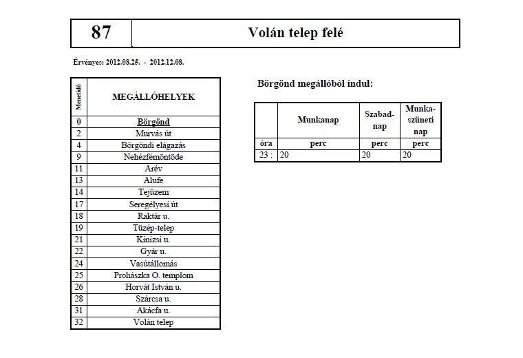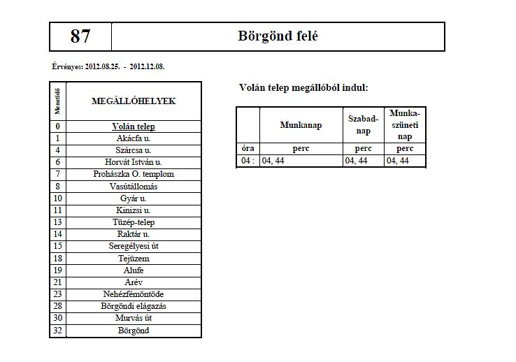 | 87 | Volán telep - Börgönd | LETÖLHETÕ (.pdf) | |||