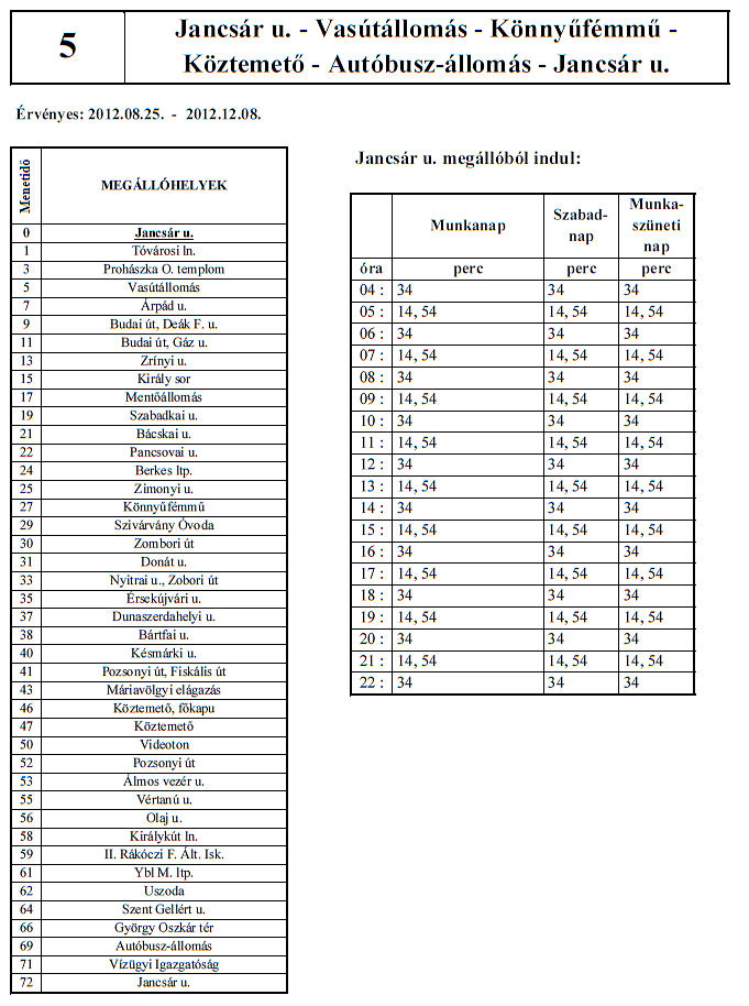 | 5 | Jancsár u. (körjárat) | LETÖLHETÕ (.pdf) | |||