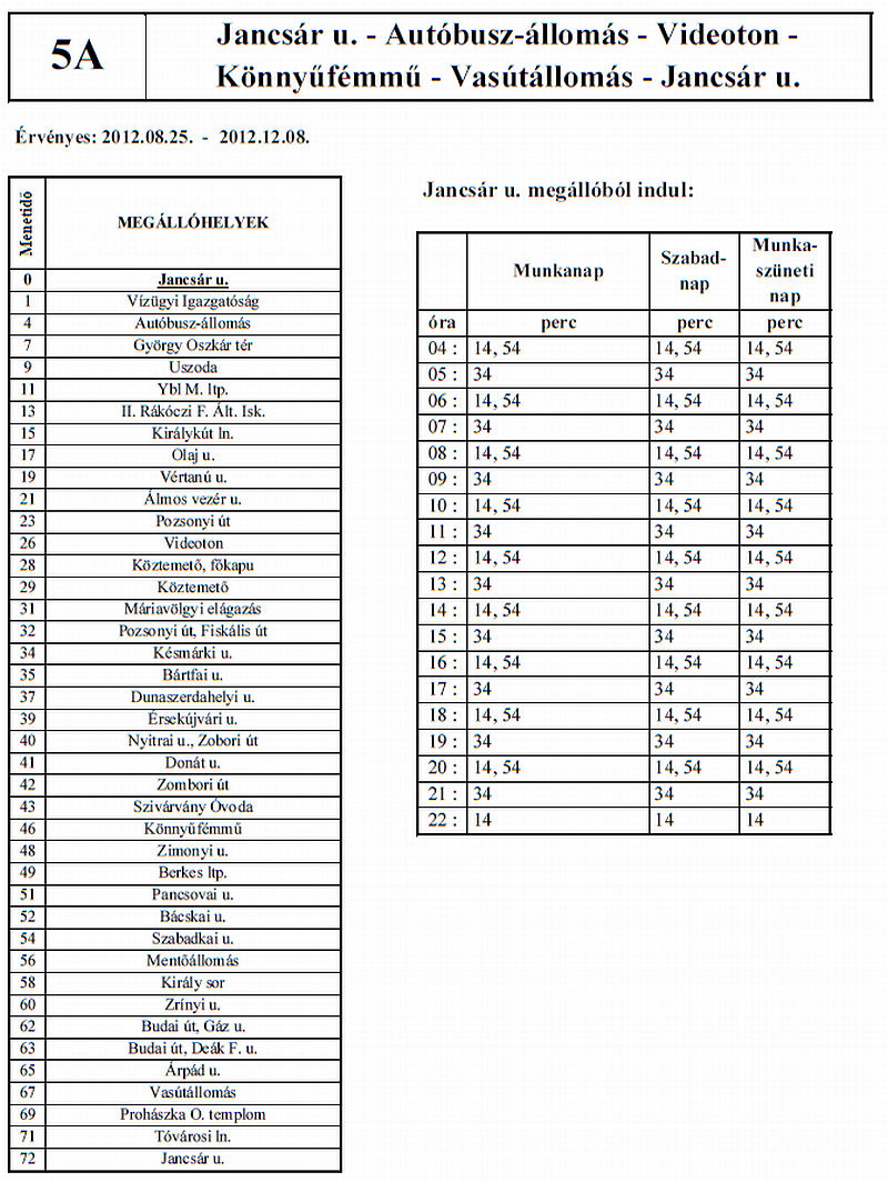 | 5A | Jancsár u. (körjárat) | LETÖLHETÕ (.pdf) | |||