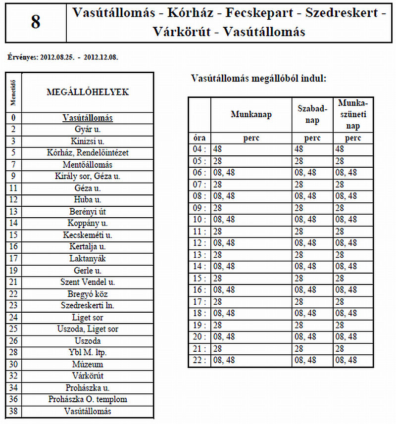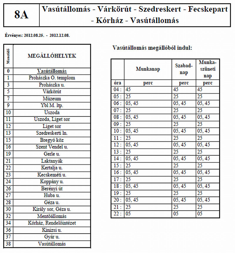| 8A | Vasútállomás (körjárat) | LETÖLHETÕ (.pdf) | |||