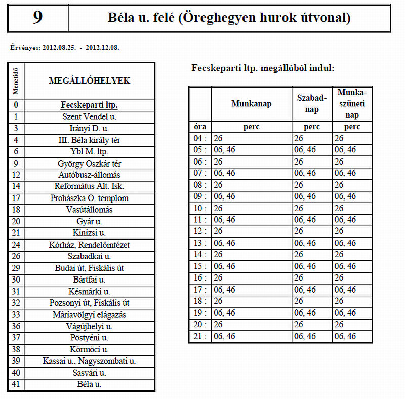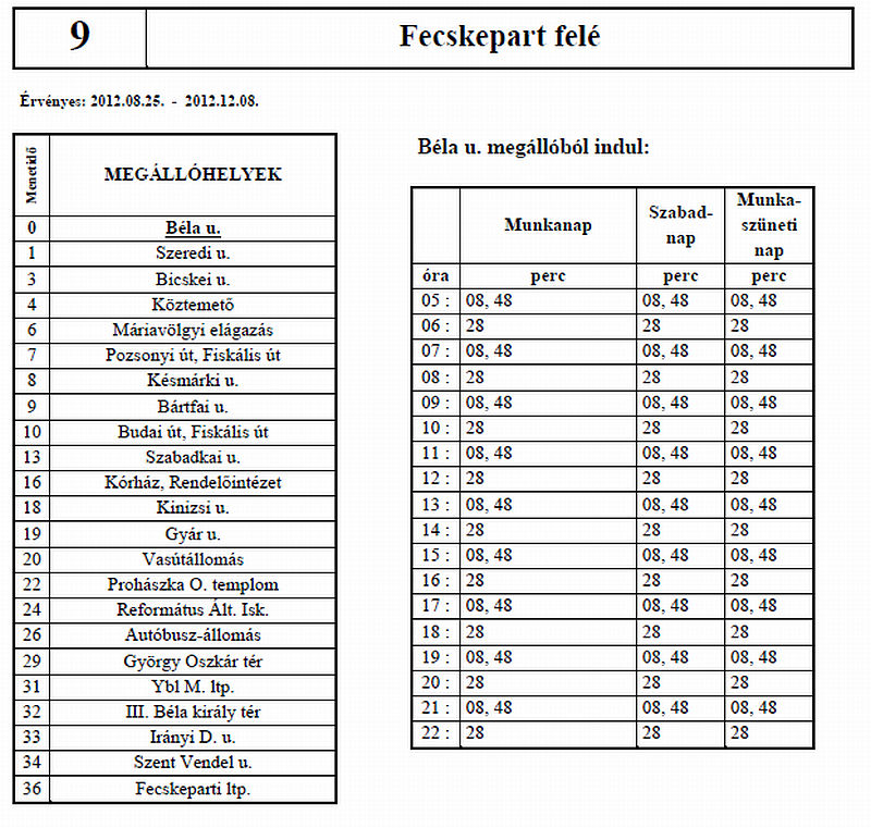 | 9 | Fecskeparti úti ltp. - Béla u. | LETÖLHETÕ (.pdf) |