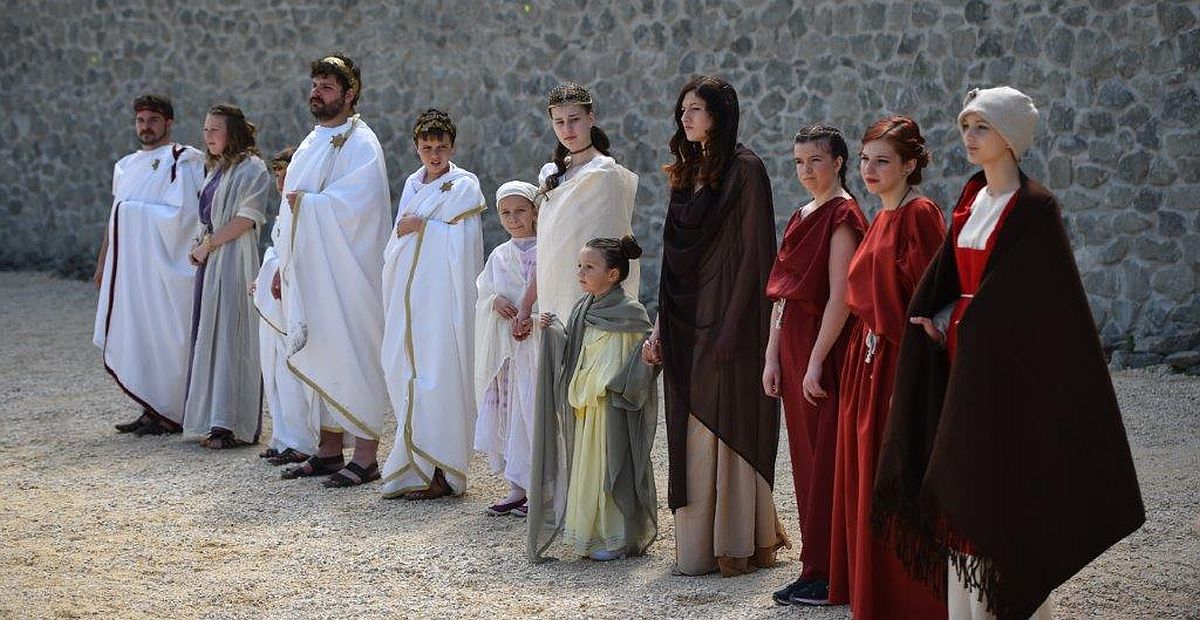 A Szarvas-törzs Kelta Hagyományőrző Egyesület, a Norde Gard és a Brigetio Legio csatabemutatója után újra a színháztérben gyülekeztek az érdeklődők, ahol az ókori római viseletből adtak ízelítőt a résztvevőknek. Az ókori életben a külső megjelenés elsősorban a társadalmi helyzetet, az illető személy jogállását tükrözték. A divatbemutató keretében többek között Flóra istennő áttetsző sárga selyemruháját, a kelta asszonyok által viselt szárnyas fibulát, az előkelő római matrónák áttetsző barna selyem stóláját, illetve a szolgák tunikáját is megcsodálhatták.