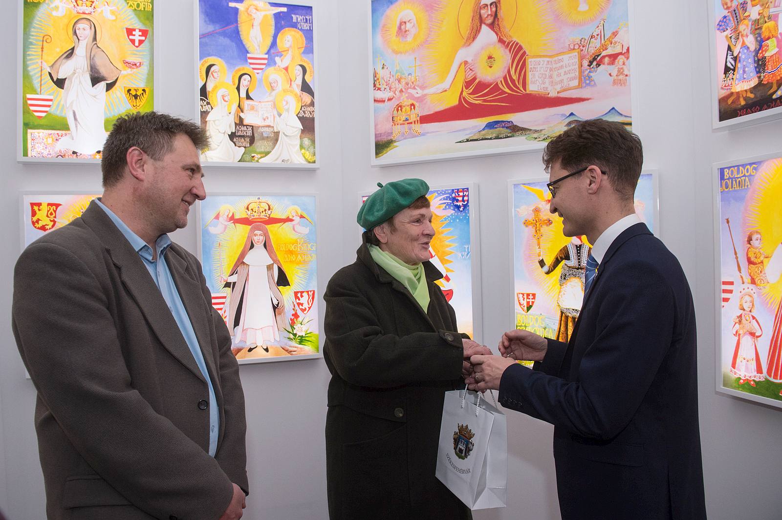 A péntek délelőtti tárlatvezetésen dr. Cser-Palkovics András, Székesfehérvár polgármestere és Kulcsár Mihály, a Szent István Király Múzeum igazgatója adta át a város és a múzeum ajándékcsomagját a székesfehérvári Stoffer Lászlóné Arankának, akit a „kiállítás számos fehérvári kötődése” vonzott leginkább a tárlatra.