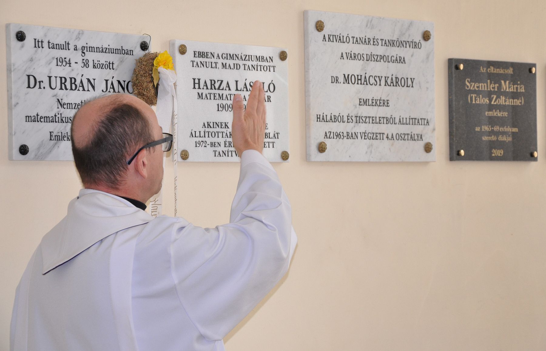 Ezt követően Szemlér Mária (Tálos Zoltánné) tanárnő életútját ismertették, majd Dózsa István atya megáldotta az 1965-69 évfolyam szerető és tisztelettel emlékező diákjai által állíttatott emléktáblát.