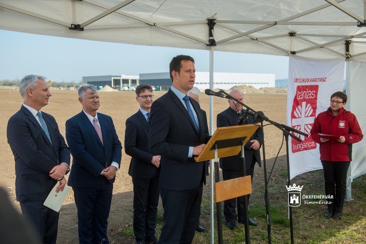 Ünnepnapnak nevezte az alapkőletétel eseményét dr. Cser-Palkovics András Székesfehérvár polgármestere. "A helyszín szimbolikus: egyrészt Székesfehérváron vagyunk, Szent István városában, a magyar keresztény hagyományok, értékek bölcsőjében. (…) Másrészt egy igazi gazdasági térben vagyunk: ez a gazdasági tér teszi lehetővé, hogy a város a 21 millió forintot támogatásként át tudta adni a projekt megvalósításához. A kölcsönhatás lényege, hogy az itt működő cégek fizetik a helyi adót, amit az önkormányzat – remélem, inkább jól, mint rosszul – elkölt, és fontos célok megvalósítására biztosít, mint ez a mostani. Szép és szimbolikus dolog az, hogy ipari, kereskedelmi, logisztikai cégek között van egy szociális tevékenységekhez kapcsolódó logisztikai központ.” A város polgármestere köszönetet mondott a Karitásznak, hogy a városra gondolt a központ megépítését illetően, és kifejezte, hogy a gazdaságilag és közösségében erős város közgyűlésének javasolja a további támogatást a logisztikai központ üzemeltetését illetően.