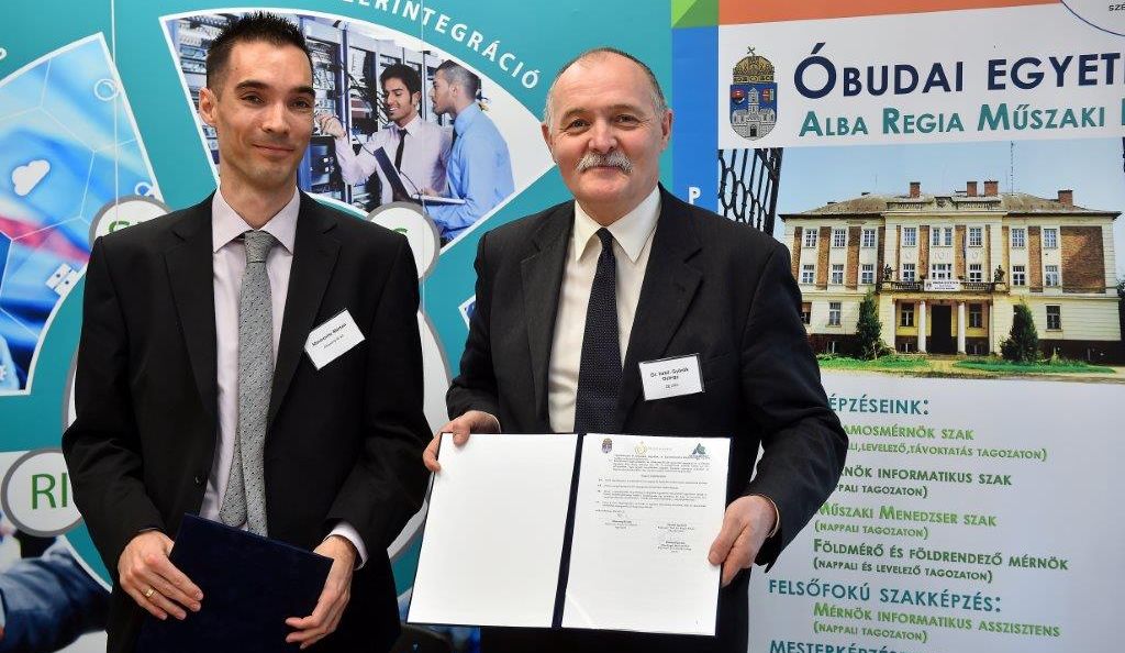 A hétfői együttműködési megállapodás aláírásával immár tízre nőtt az Óbudai Egyetem Alba Regia Műszaki Kar stratégiai partnereinek száma. A felsőoktatási intézmény a jövőben az Albacomp Rendszerintegrációs Kft-vel is szorosabb szakmai kapcsolatot ápol majd, melynek célja a minőségi szakemberképzés feltételrendszerének erősítése, valamint a kutatás-fejlesztési és innovációs gyakorlati képzés biztosítása. Az együttműködés fontos területe a duális képzés, de a felsőfokú oktatási paletta többi szegmensében (pl. BSc/MSc képzés, kiegészítő, illetve átképzések) is segíti az Egyetem az Albacomp RI Kft. tevékenységét, a cég pedig többek között a szakmai-tudományos gyakorlat, valamint az oktatáshoz szükséges műszaki információk és anyagok megszerzésében vállal szerepet.