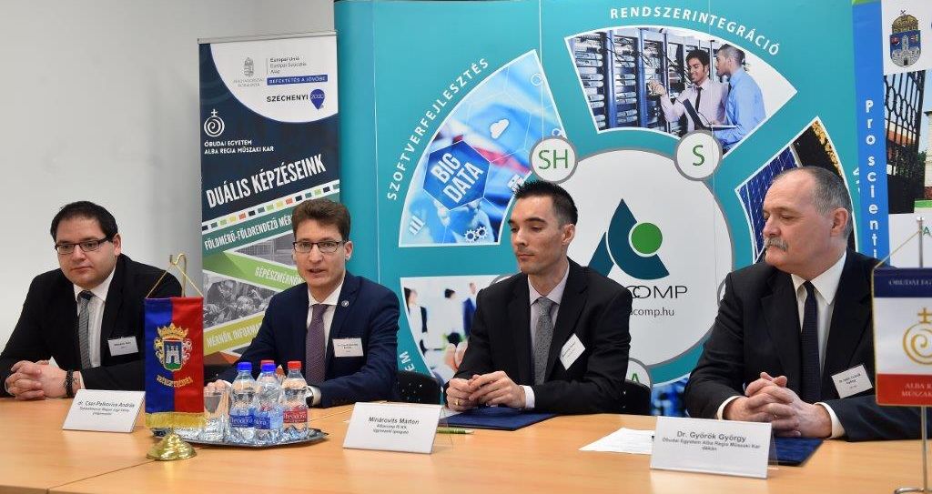 Partnerségi megállapodást írt alá az Óbudai Egyetem Alba Regia Műszaki Kara és az Albacomp Rendszerintegrációs Kft., amely tavaly év végén avatta fel országos szinten is egyedülálló kutató-fejlesztő központját. A megállapodás aláírása alkalmával dr. Györök György, az Óbudai Egyetem Alba Regia Műszaki Kar dékánja kiemelte, hogy az Albacomp évtizedek óta fontos zászlóvivője Székesfehérvár műszakiságának.