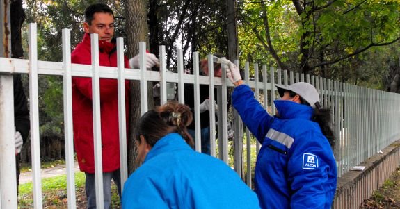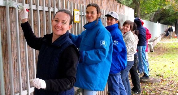 Az Alcoa munkatársai is segítettek festeni az óvoda kerítését