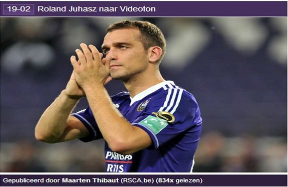 A belga bajnokság élcsapata saját honlapján jelentette be, hogy Juhász Roland, aki hét éve az Anderlecht játékosa, a szezon végéig a Videotonba igazolt. A 76-szoros válogatott védő nyári sérülése után nem tudott bekerülni klubjában a csapatba, utóbb már a keretbe sem, hónapok óta napirenden volt távozása. Orosz és magyar ajánlatai is voltak, sajtóértesülések szerint José Gomes vezetőedző kérésére szerződtette a Videoton. A fehérváriaktól lehet esélye visszakerülni a magyar válogatottba is.