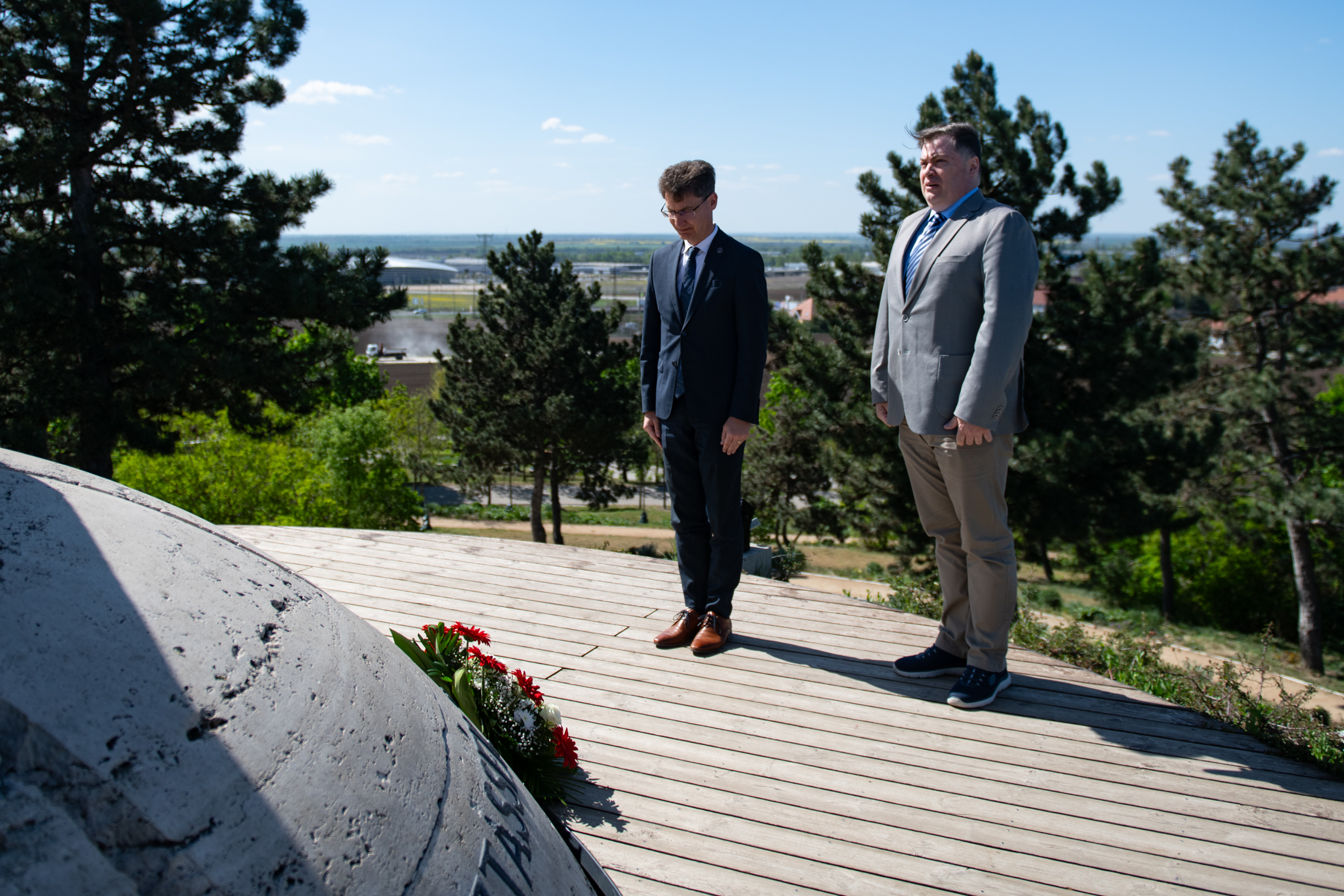 Székesfehérvár Önkormányzata és a város közössége nevében dr. Cser-Palkovics András polgármester és Róth Péter alpolgármester emlékezett és hajtott fejet a Csúcsos-hegyen álló emlékműnél.
