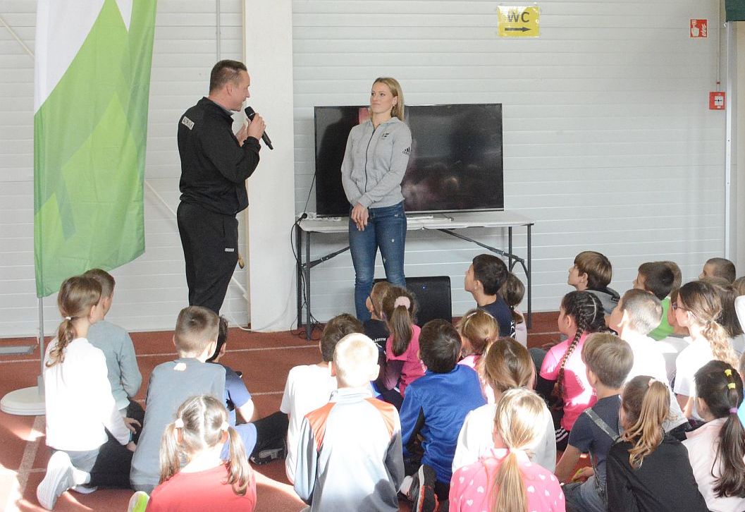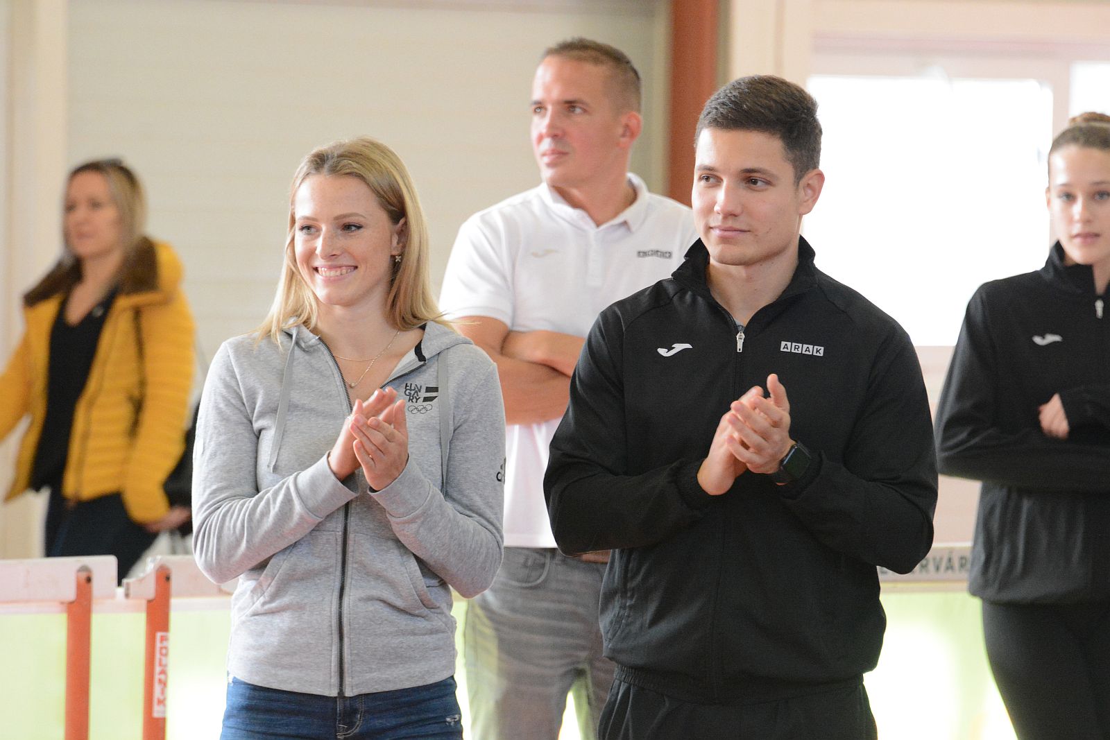 Takács Boglárka a Bp. Honvéd versenyzője, országos csúcstartó, sprinterként Magyarország leggyorsabb hölgye. Most itthon van, és szívesen segítette a jövő reménységeit a rendezvényen is tanácsaival.