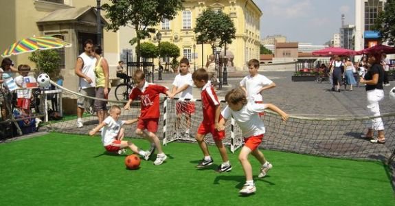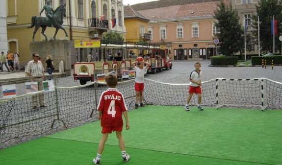 Két éve a labdarúgó-világbajnokság szolgáltatta az apropót, most pedig a jövő pénteken kezdődő Európa-bajnokság: óvodások és kisiskolások számára rendezik meg a meghívásos minifoci tornát. A székesfehérvári városháza előtt felállított műfüves kispályán keddtől péntekig focizhatnak majd a gyerekek.