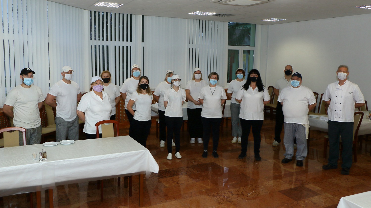 A járvány első napjától kezdve ketté van osztva a konyha állománya, mégpedig amiatt, ha megbetegedés ütné fel a fejét, a váltás rögtön át tudja venni a munkát. Az előírt rendszabályokat – maszk, kesztyű - folyamatosan betartják és betartatják.