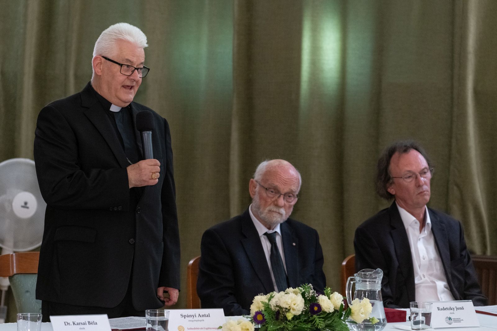 „Változik a világ. Nem csak a klímaválság az, ami zavar bennünket, hanem látjuk azt is: hatalmas erők dolgoznak azon, hogy elfelejtsük a múltat. A jelen az érdekes, az, amihez éppen kedvem, hangulatom van, és ebben engem senki ne zavarjon, senki ne gátoljon, mindenki fogadja el, hogy én ilyen vagyok! Pedig mi tudjuk biztosan, hogy az az ember, akinek nincs múltja, nem tiszteli a gyökereit és éppen csak a maga hangulatai, törekvései szerint akarja élni a mindennapjait, az végtelenül kiszolgáltatott és nem csak szegény, de nincstelen is lesz. Az ilyen embereknek az élete ebben a nincstelenségben sajnálatra méltóvá válik!” – fogalmazott ünnepi beszédében Spányi Antal megyés püspök, az Államalapító Szent István Érdemrend és Díj Alapítvány kuratóriumának elnöke.