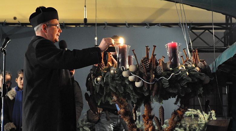 Szombaton és vasárnap - immár tízedik éve - megnyitotta kapuját a Püspöki Palota kertjében az Adventi Udvar, ahol szombaton Spányi Antal megyés püspök adventi gondolatai után gyújtották meg az adventi koszorún a második gyertyát. A Székesfehérvári Egyházmegye a jubileumi évben különleges ajándékot ad: fénnyel írva bárkinek lehetősége van karácsonyi üzenetet küldeni a Püspöki Palota homlokzatára. A szfvar.katolikus.hu/jokivansag internetes oldalon keresztül december 15-ig várják a karácsonyi jókívánságokat, melyek advent 4. vasárnapján, 2014. december 21-én 18.00 és 22.00 között jelennek meg a Püspöki Palota homlokzatán.