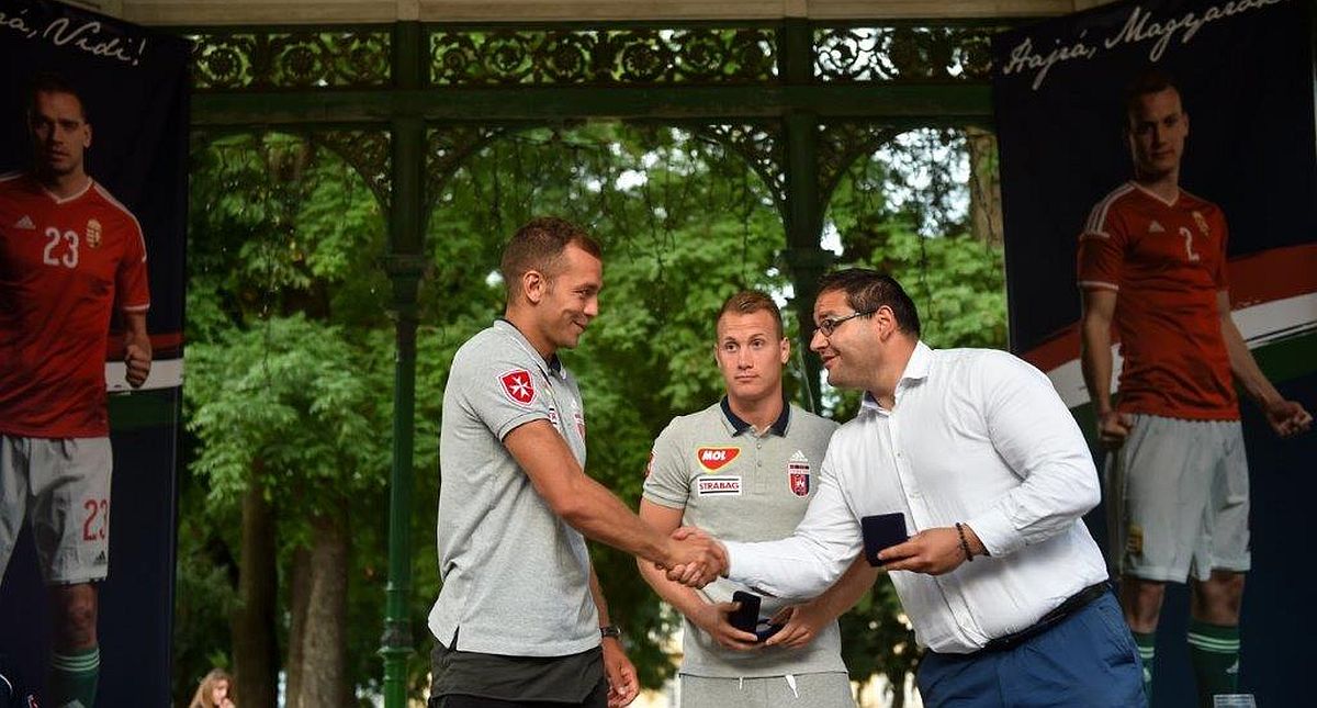 Székesfehérvár Önkormányzata nevében Mészáros Attila alpolgármester köszöntötte a Videoton FC játékosait. Beszédében kiemelte, hogy Franciaországba is rengeteg fehérvári drukker látogatott el, emellett a Zichy ligetben és a város több pontján is több ezren szurkoltak a magyar labdarúgó válogatott sikeréért. Külön örömét fejezte ki, hogy két Vidi játékos is tevékeny részese volt annak a csodának, hogy a magyar válogatott csoportelsőként jutott be a legjobb tizenhat csapat közé. Végül a Székesfehérvár címerét jelképező emlékérmet nyújtotta át a két labdarúgónak, dr. Cser-Palkovics András polgármester és a város nevében.
