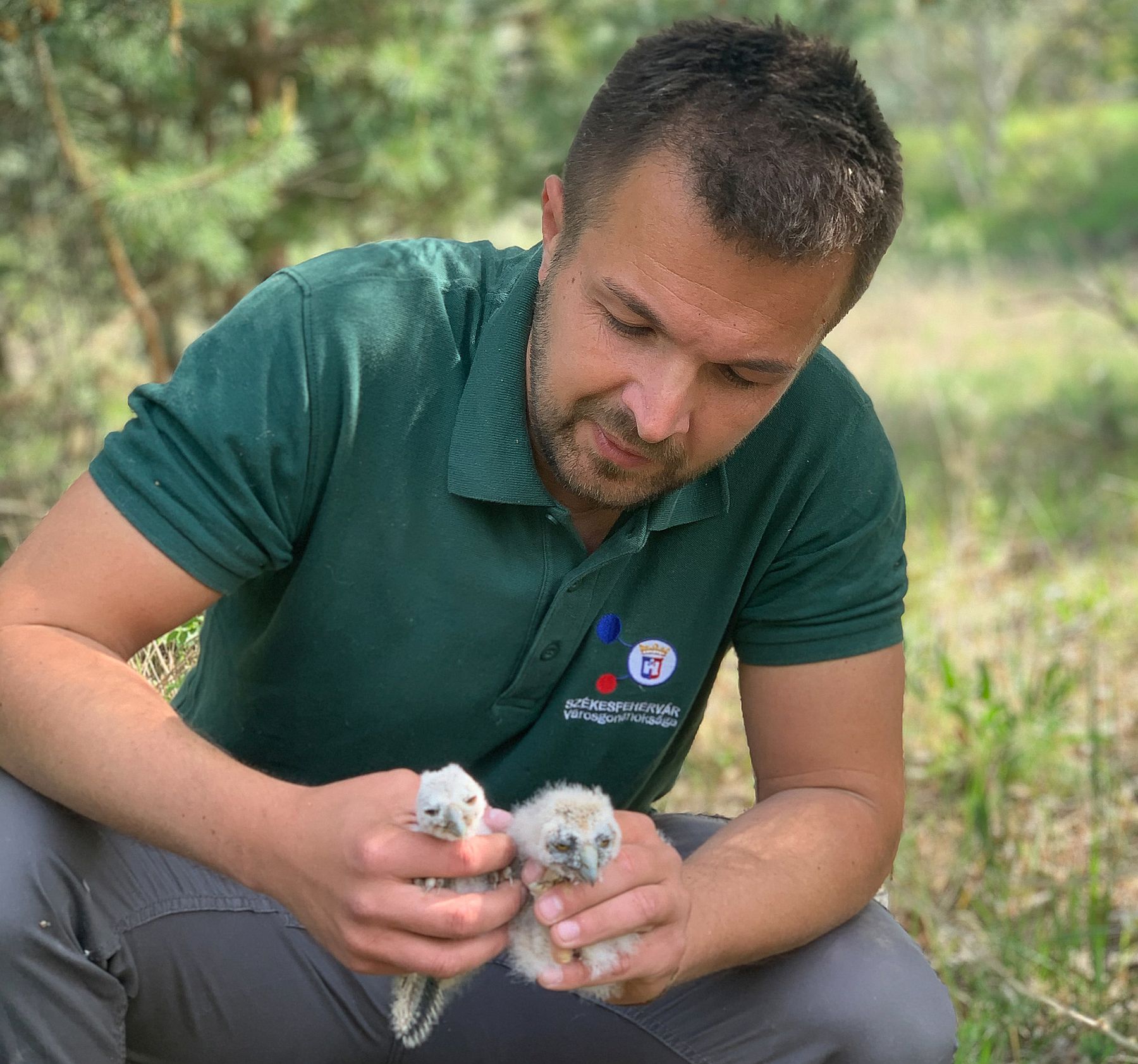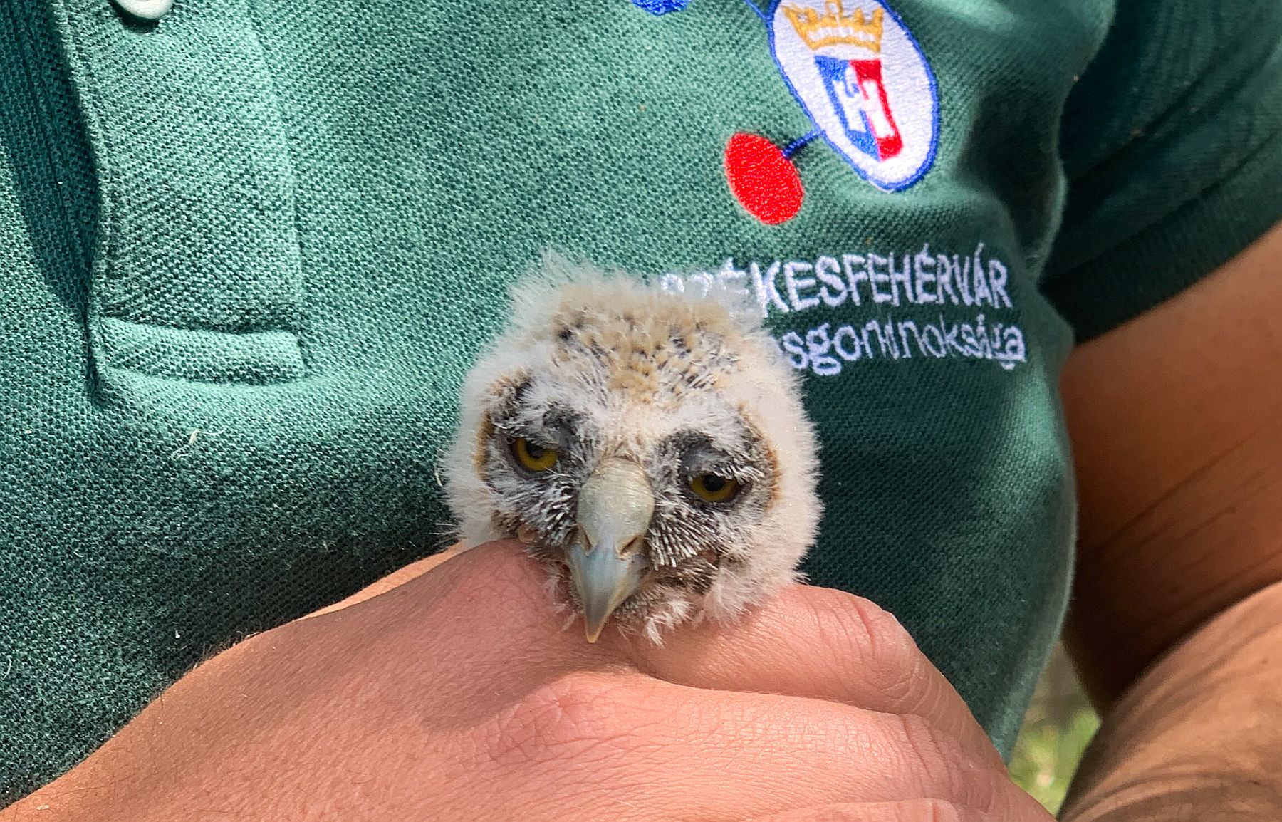 a Sóstó Természetvédelmi Területen kikeltek és szépen nődögélnek a legifjabb koronázóvárosi bagolyfiókák, akiket Csihar László, a Duna-Ipoly Nemzeti Park munkatársa Csete Gábor, a Városgondnokság természetvédelmi szakmai vezetője segítségével meg is gyűrűzött. A már most is kedvesen csattogó két testvér mellett még három tojás van a fészekben, így hamarosan hét tagúvá bővülhet a sóstói fülesbagoly család.