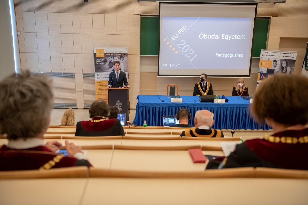 Az Óbudai Egyetem ma rendezte meg az EU-PED 2021 pedagógusnapi ünnepségét, a Kárpát-medencei felsőoktatás magyar reprezentánsai részvételével.