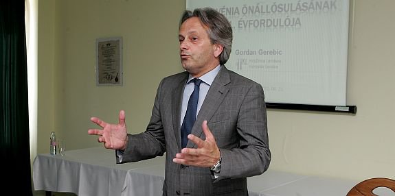 Vargha Tamás köszöntötte a megjelenteket az évforduló alkalmából, tolmácsolva dr. Cser-Palkovics András, Székesfehérvár polgármesterének üzenetét is. Mint mondta: Szlovénia négy nagy európai földrajzi régió találkozásánál: az Alpok, a Dinári-hegység, a Kárpát-medence és a Földközi-tenger térségében foglal helyet. A szlovén és a magyar nemzet történelmének összekapcsolódásának felidézése helyett, emlékezzünk meg a 21 évvel ezelőtti tíz napos háborúra, amikor a szlovén nép kikiáltotta a függetlenségét Jugoszlávia támadását visszaverve-hangsúlyozta a képviselő. Szlovénia kiváló, képzett munkaerővel rendelkező ország, fejlett infrastruktúrával, a NATO tagjaként és Európai Unió tagállamaként is fontos szerepet tölt be- hangsúlyozta az ország adottságait köszöntőjében a képviselő.