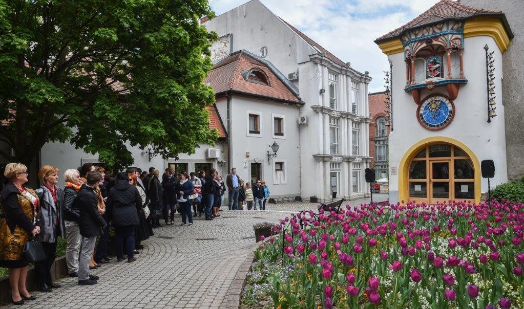 A Ballagás Hete programsorozat keretében az Órajátéknál köszöntötték csütörtökön a város ballagó diákjainak osztályfőnökeit. A ballagási időszakban az iskolai életet jelképező figurák, a krónikás, világi tanító, a világi diák és a 48-as diák-forradalmárok alakjai tűnnek fel a toronyban és ballagási dallammal várják a Kossuth udvarban sétálókat.