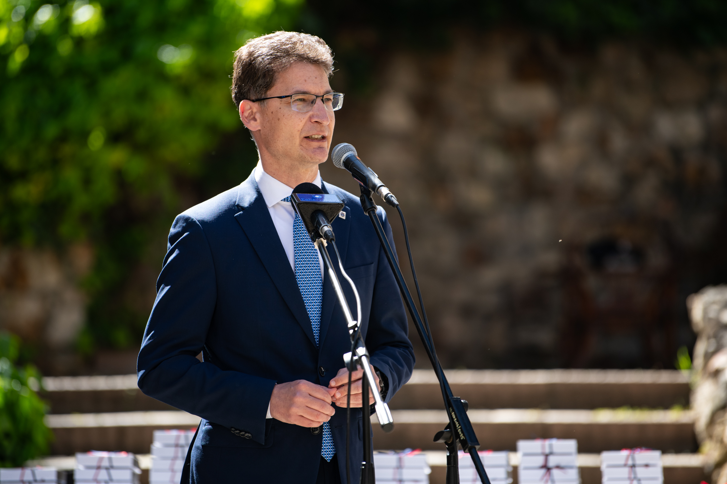 „Fontos, hogy ezt a kiemelten nagy felelősséggel járó munkát megköszönjük, és nyilvánosság figyelmét is fölhívjuk arra, hogy osztályfőnöknek lenni különleges feladat és különleges felelősség is. De legalább ennyire fontos, hogy a diákoknak is köszönetet mondjunk azért, hogy hosszú éveken keresztül ők voltak ennek a városnak a fiataljai, ők határozták meg azt, amit a diákok adni tudnak hangulat tekintetében egy városnak.” – fogalmazott köszöntőjében dr. Cser-Palkovics András.