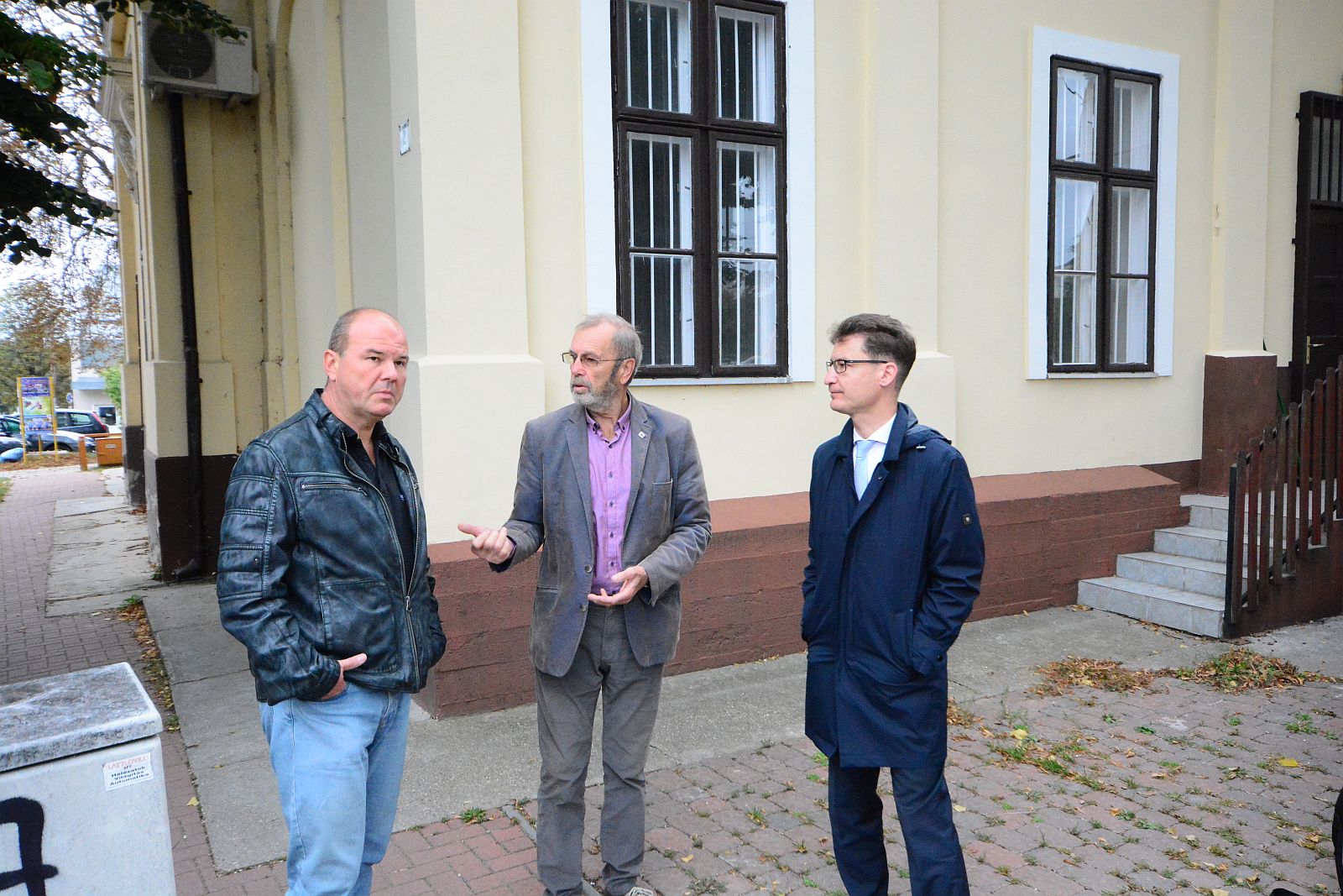 A Késmárki utca elején, bejárással kezdődött a hétfő reggel. A város polgármestere Cser-Palkovics András, az Öreghegy önkormányzati képviselőjével, Horváth Miklós Csabával, a városgondnokkal Bozai Istvánnal és Nagy Zsolttal a Közlekedési Iroda vezetőjével közösen járták be az öreghegyi posta épületét és környékét.