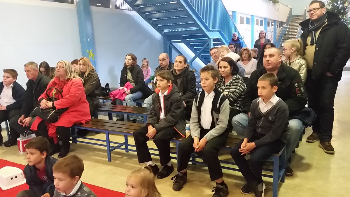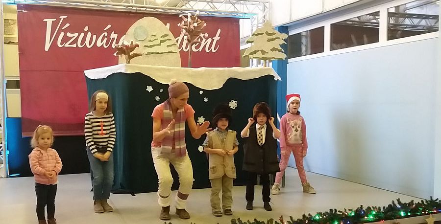 A köszöntőket követően Nyáry Bernadett bábszínháza szórakoztatta a legkisebbeket. A Hóember ajándéka című bábelőadás sok közös játékot kínált az óvodásoknak és kisiskolásoknak, Vivaldi muzsikával. A történet szerint az erdei kisállatok lázasan készülődnek a karácsonyi ünnepségre. Pitének, az őzikének sehogyan sem megy a fejébe a vers. Ebben segítenek neki a gyerekek, akik azt is megtanulhatják, hogy a legszebb ajándék együtt lenni.