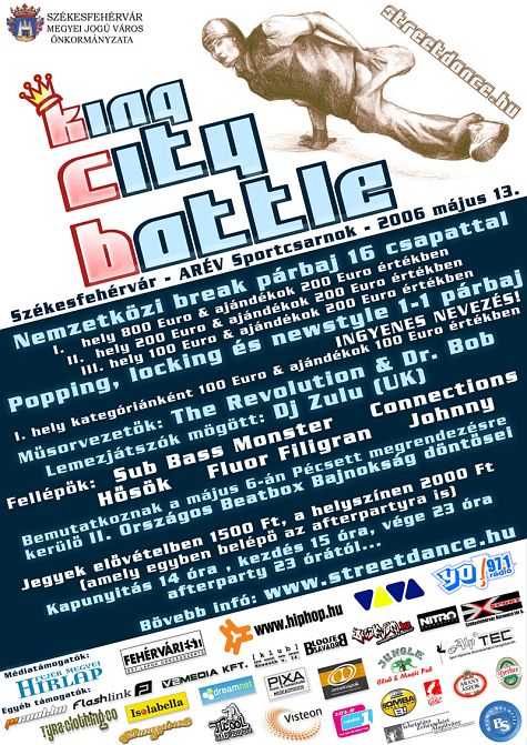 A King City Battle 2006 Magyarország eddigi legnagyobb streetdance (break és hiphop) versenyének ígérkezik, melynek házigazdája a PiCool Hip-Hop SE. A rendezvény hagyományteremtő szándékkal indul útjára május 13-án Székesfehérváron az ARÉV Sportcsarnokban. A 15 órakor kezdődő program átöleli a hiphop kultúra szerves részeit, egész napos izgalmas szórakozást biztosítva a nézők számára.