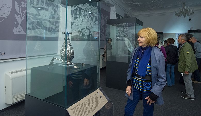 A 11.00 órás csoportos látogatásra érkezett a Tóvárosi Nyugdíjasok Baráti Társasága, melynek tagja, Simon Erzsébet tekinthette meg ötezredik vendégként a felbecsülhetetlen értékű ezüst műtárgyakat. A székesfehérvári hölgy nagyon örömmel fogadta a köszöntést, mint mondta, még soha nem volt része ilyen nagy és kivételes meglepetésben. A sajtóból értesült a kiállítás híréről, amely borzasztóan kíváncsivá tette. Simon Erzsébetet a múzeum igazgatója, dr. Demeter Zsófia köszöntötte, aki átadta dr. Cser-Palkovics András polgármester üdvözletét, és egy ajándékcsomaggal kedveskedett a látogatónak.