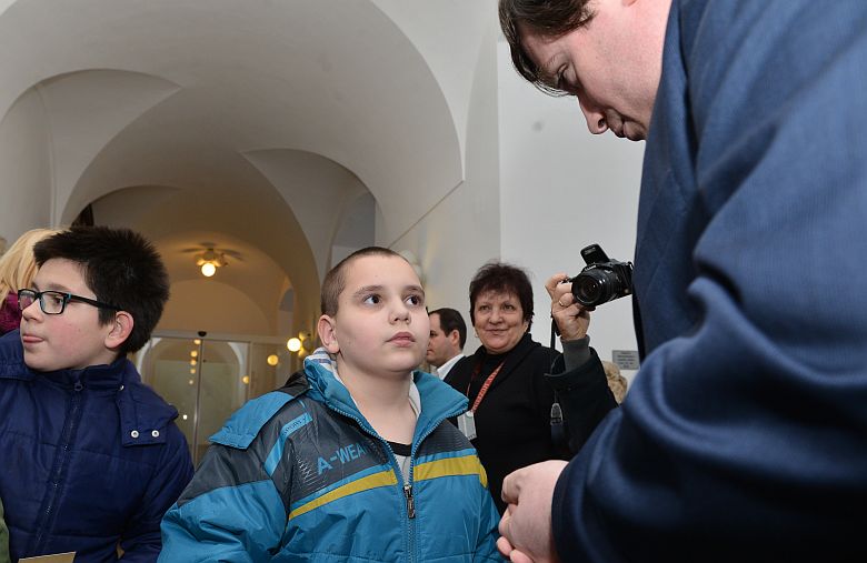 Az ötödik osztályos Varga Márkó a Seuso-kiállítás húszezredik látogatója