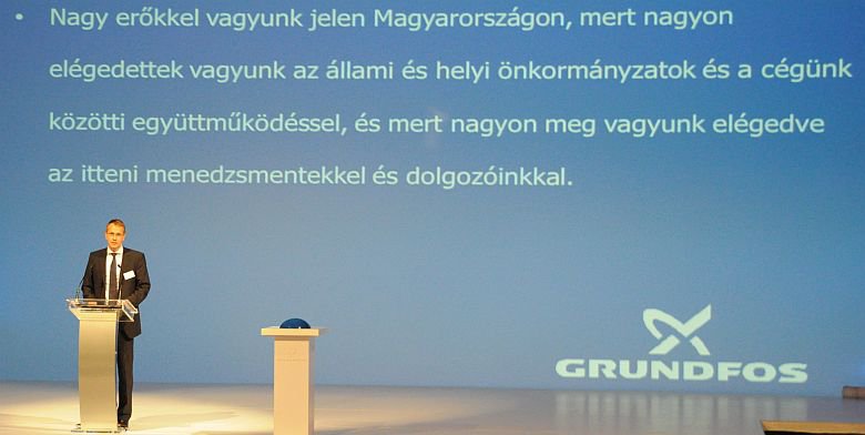 Orbán Viktor miniszterelnök és Lars Aagaard, a Grundfos cégcsoport alelnöke avatta fel csütörtökön délután a világ legnagyobb szivattyúgyártó cégének negyedik magyarországi gyárát Székesfehérváron. A Grundfos Magyarország Gyártó Kft. 17 milliárd forintos beruházásával már második székesfehérvári gyárát építette, ahol 300-350 új munkahely jön létre 2015-ig. Egy közel 5000 négyzetméteres laboratórium mellett Székesfehérváron épült meg Európa legmodernebb és legnagyobb szivattyú tesztberendezése.