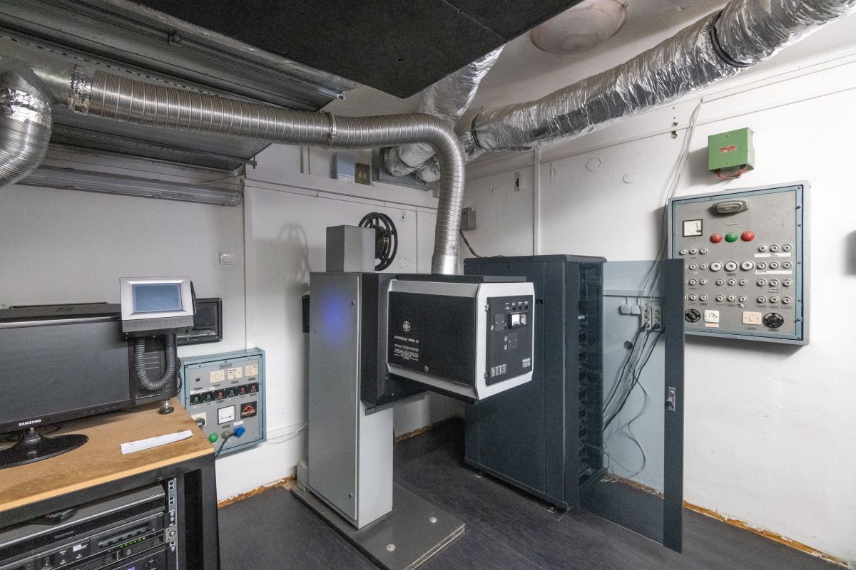 Krisztián megmutatta azt is, hogy a digitális technika ellenére a gépteremben még látható a régi, analóg vetítő: „Eredetileg kettő volt belőlük, mert a filmek általában két tekercsen érkeztek. Amint lefutott az egyik, rögtön indulhatott a másik, így nem kellett szünetet tartani. Ma már csak akkor vesszük elő őket, ha valamilyen program keretében a látogatók megnézhetik a géptermet.”