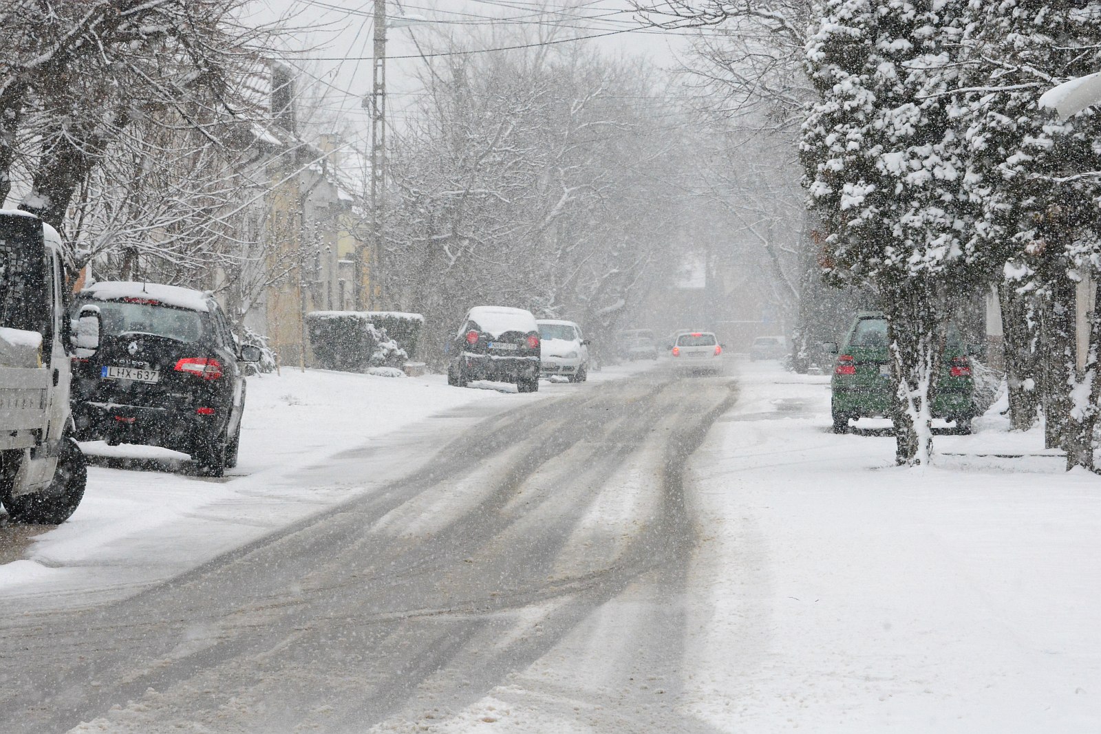 A város főútjai vizesek, néhol latyakosak, a kisebb utcák latyakosak azonban az alásózásnak köszönhetően sehol nincs ráfagyva a víz a burkolatra.