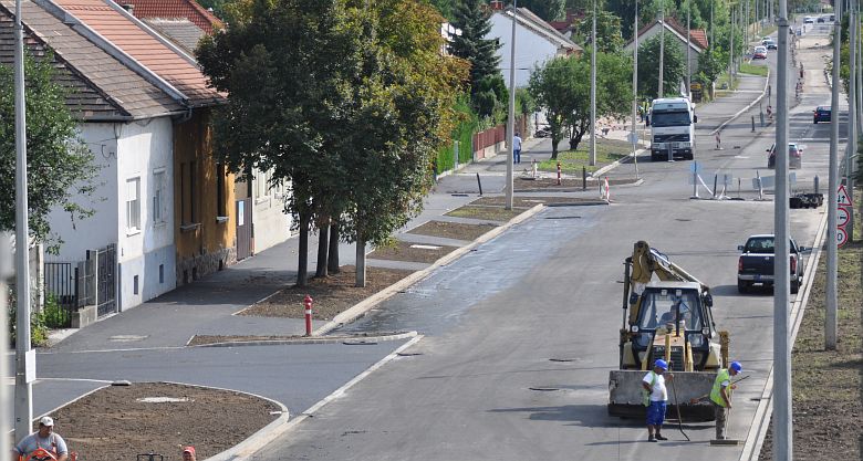 A napokban az utolsó aszfaltréteget viszi fel a kivitelező a teljesen megújuló Mártírok útja Deák Ferenc utca és Zrínyi utca közötti szakaszán. Hétfőn és kedden a buszmagállók, útcsatlakozások és az úttal párhuzamos parkolók aszfaltozását végezték és még a héten az úttestere is rákerül az utolsó-, az-az a kopóréteg. A kivitelezők mindent megtesznek azért, hogy a lehető leghamarabb elkészüljenek és iskolakezdéskor már használható állapotban legyen az út.