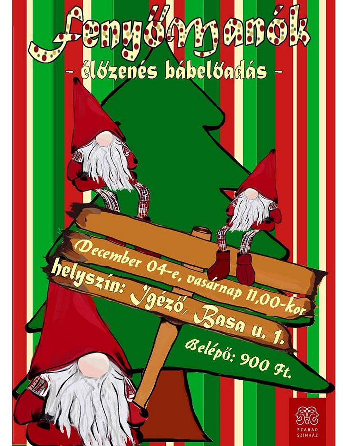 A bajuszmesék sorozat újabb produkcióját tekinthetik meg azok, akik december 4-én, vasárnap délelőtt ellátogatnak az Igézőbe (Basa utca 1.). Az érdeklődők a Szabad Színház előadásában a Fenyőmanók című élőzenés bábelőadást tekinthetik meg. A helyek korlátozott száma miatt az előzetes jegyvásárlás ajánlott! Minden érdeklődőt szeretettel várnak!