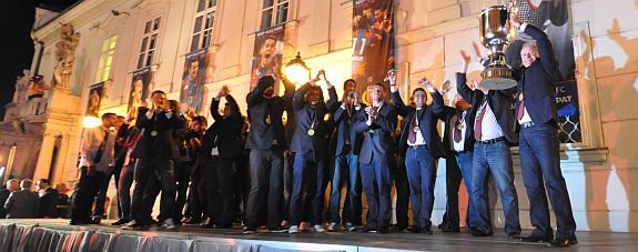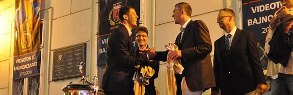 Az ünneplő szurkolók a felállított óriáskivetítőn nézhették meg újra a szezon legszebb pillanatait, majd az érmek átadása után a Városháza erkélyén Garancsi István klubelnök, és dr. Cser-Palkovics András, Székesfehérvár polgármestere adta át a futballistáknak a Videoton névre szóló aranymezét, valamint a város által készíttetett kupát.