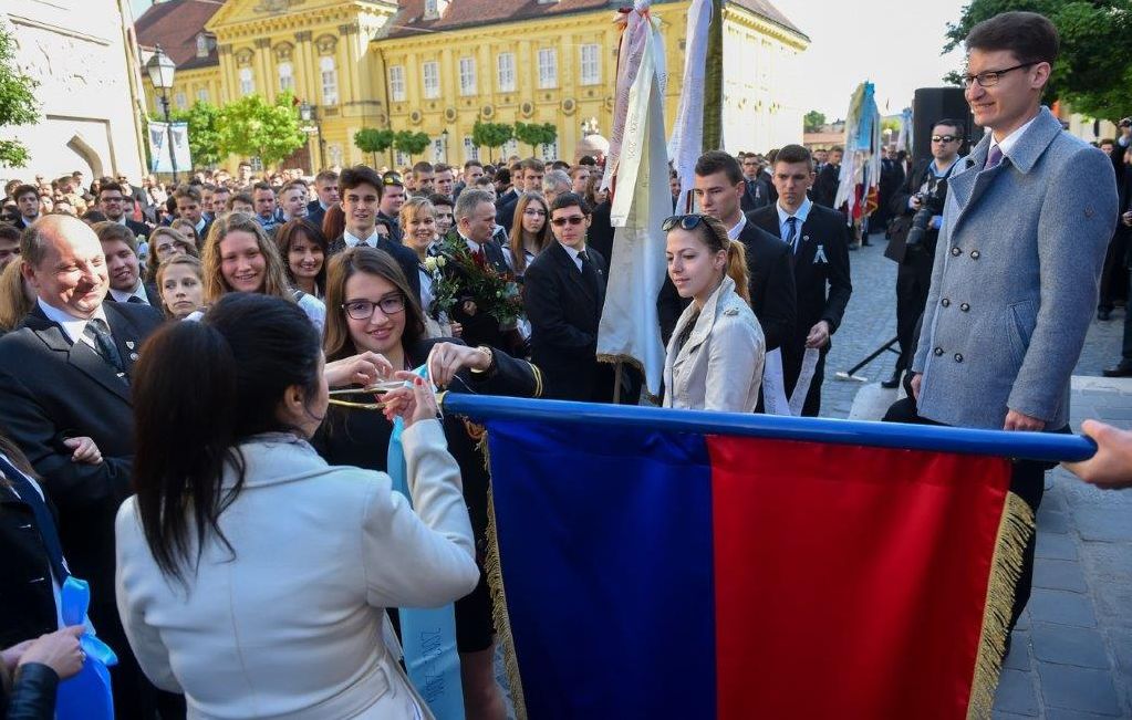 A hagyományokat követve, a közös ballagás zárásaként a végzős diákok emlékszalagot kötöttek a város zászlajára. Az emlékezetes pillanatok alatt a One Day zenekar játszotta a Repubic együttes „Ezt a földet választottam” című dalát, majd a Szózat közös eléneklésével ért véget a városi ballagás.